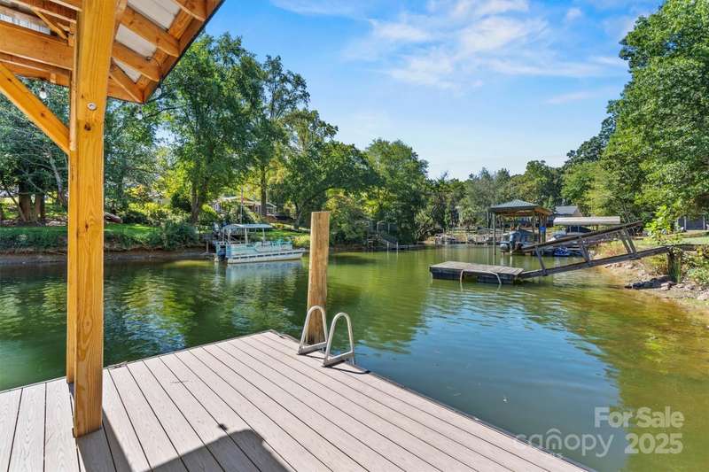 Waterfront custom home w/ one-of-a-kind architecture is a must see & rare find on Lake Norman, NC! Like new, built in 2024 offering approx 5,000 under-roof sq ft that blends indoor luxury w/ outdoor entertaining & fun in the sun! Home is situated in highly sought-after Westport in Denver, NC on a an easily navigable cove offering protection from main-channel wakes & noise. Composite wood floating dock w/sun deck, covered boat slip, & 5000 lb capacity boat lift. This is a bustling tree-lined cove w/ swimmers & 4-legged friends many months of the year, followed by a peaceful retreat to overlook smooth-as-glass water w/ beautiful NC colorful fall foliage. Cold-e-sac w/ no through traffic. Rear fenced in yard flanked with landscaping has a gentle slope to the lake that's ready for your dream pool. Inside, the soaring ceilings & oversized windows offer plenty of natural light. The heart of the home - main-level gourmet kitchen w/ oversized island w seating & appliances to wow the chef! Upper level is only a few steps & hosts the primary suite w/ private attached sundeck. Lower-level features 2-story great room w/floor to ceiling fireplace & game room w/wet bar for entertaining! Game room also has 2 custom-built full-size murphy beds & a full bath for extra visitors. Enjoy rear patio with custom sunshade & hot tub off the 2-story great room & game room. 3 more bedrooms/office & 2 more full baths are tucked away on the main floor behind the kitchen. Generous 2-car garage offers 815 sq ft w epoxy flooring & utility sink. Approx 1800 sq ft of floored storage above the primary bedroom & garage. Stamped driveway extends to front door entry & to rear yard. Memberships available to Westport Golf Club including tennis, pickleball, outdoor pool w/ kids splash area, fitness center, & new clubhouse for social events -. 5-minute drive to grocery, dining, retail, & access to HWY 16 for travel to Charlotte, Huntersville, or Hickory. Short term rentals permitted & home has an excellent history of rental success. Patio furniture, grills, poker table, washer, dryer convey. Fun fact, there is a tunnel from the lower level to upper level for small to medium sized pets! 2023 Southbay Pontoon (tritoon) w/ only 70 hrs is for sale also, please inquire. Take Fairfield Forest Rd off HWY 16 for easiest access to the home.