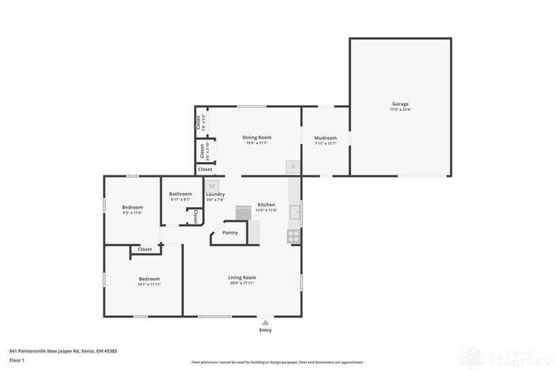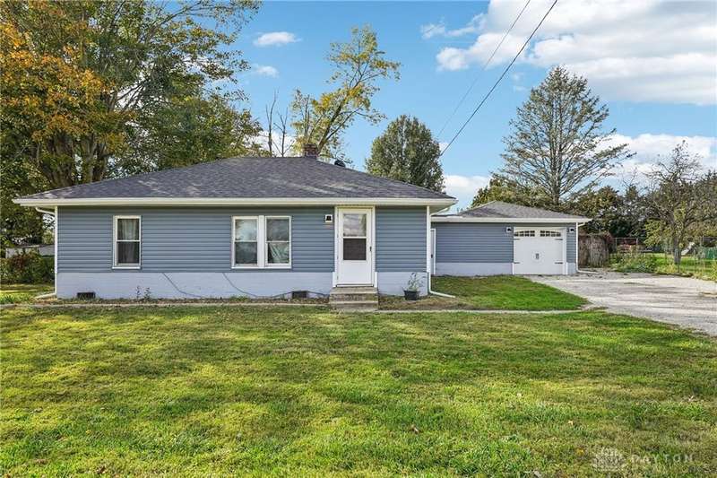 Ranch home nestled in a country setting on a spacious half-acre lot. This home features two comfortable bedrooms, one bathroom, living room, kitchen and a bonus room that can be used as a dining area or family room. An added bonus is the 1 car attached garage that is spacious enough to be considered a 2 car garage. Plenty of room for storage and a new garage door and opener has been installed in 2025. The property boasts numerous updates completed in 2025, including a new panel box and breakers, a brand-new roof, gutters, siding, exterior electric fixtures, and soffit. Embrace the privacy of country living and call this home today.