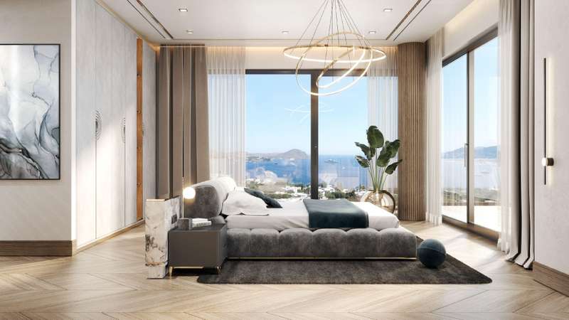Detached Houses with Private Beach Agreement in the Panoramic Sea View Project in Yalikavak