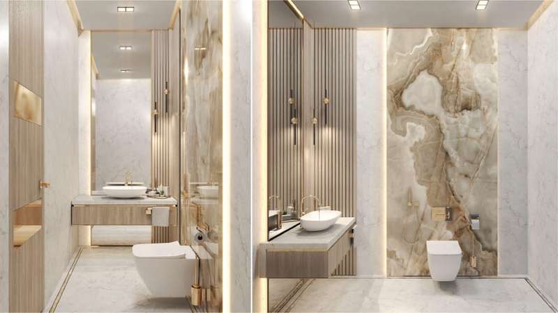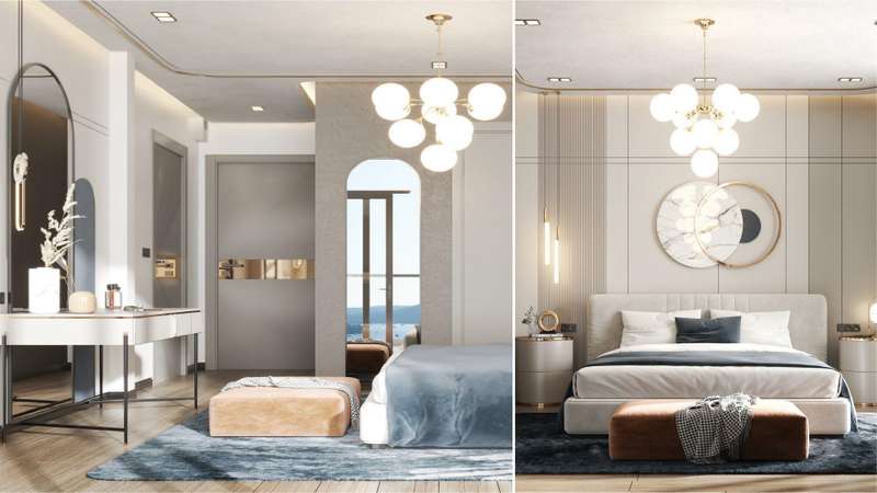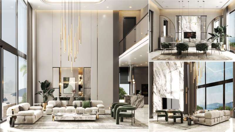 Five-bedroom detached houses have a living and dining room, kitchen, dressing room, guest room, servant’s room, driver’s room, six bathrooms, guest restroom, laundry room, storage, two balconies, terrace, and additional fitness and sauna depending on the house type.