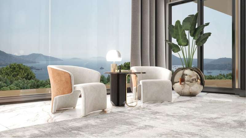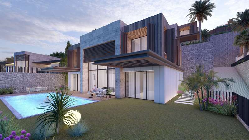 The project, built on 5,650 sqm of land, consists of seven detached houses. The houses, built with natural woods and stones, have a VRF air conditioning system, underfloor heating and cooling system, insulation system, smart home system, generator infrastructure, water tank, and hydrophore.