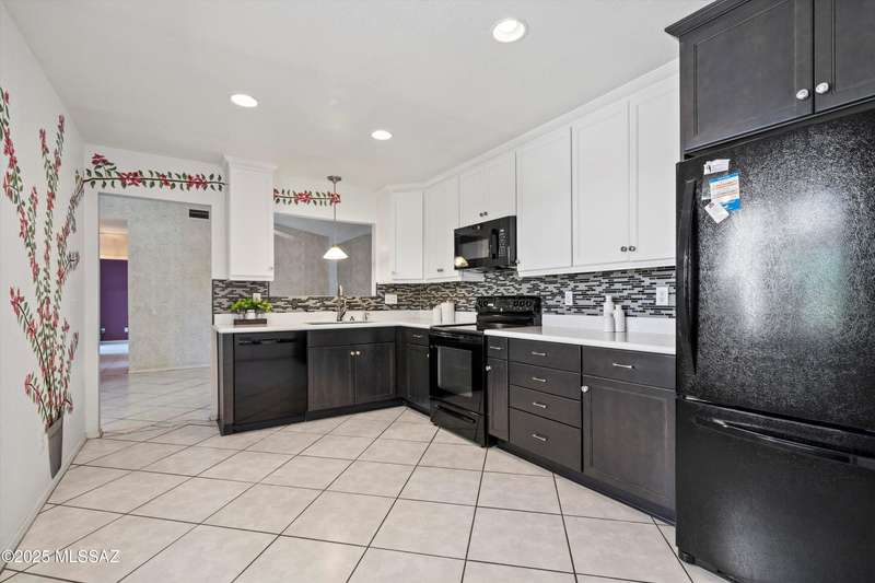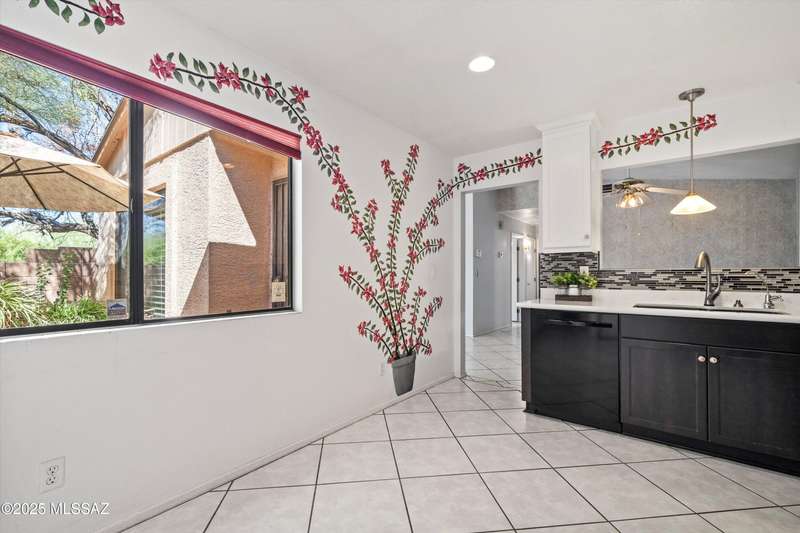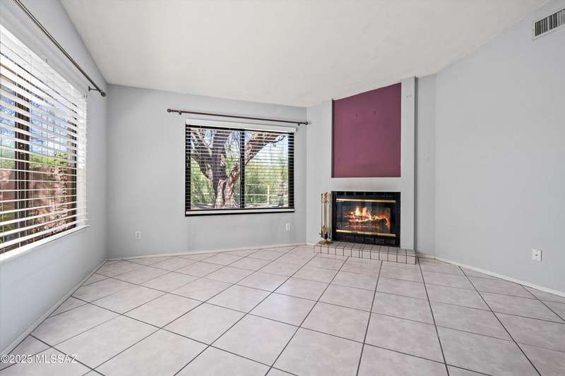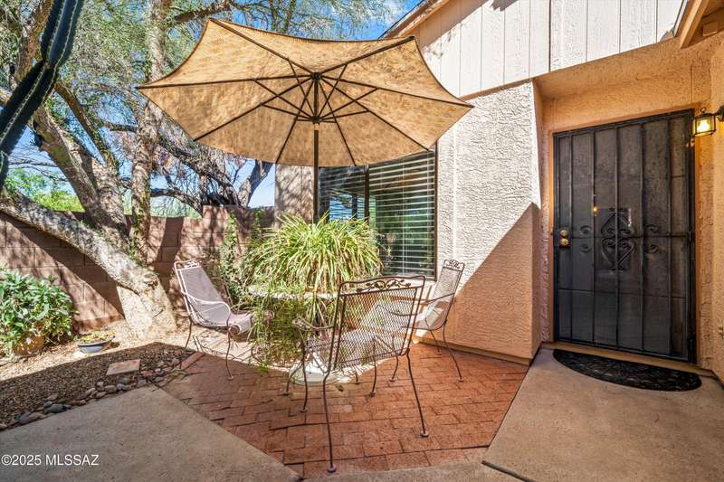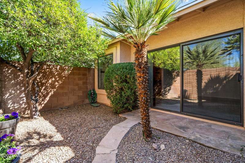 Tucked within a gated community, this stand-alone end-unit (no shared walls or rear neighbors) townhome feels like a secret garden at the edge of the desert. Surrounded by vibrant greenery and framed by mountain views, it's a place where time slows & peace lingers. This single-story remodeled 2bed/2bath, 1,178 sq. ft. sanctuary features hard floors and a new fireplace that warms the soul. The primary suite opens to a private side patio while the front courtyard invites morning light & evening calm. With a 2-car garage, solar to reduce bills, ample guest parking, & a sparkling community pool and spa, this home feels more like a retreat than a residence. Only minutes from Pima CC West, UofA, I-10 & Downtown, it's the perfect harmony of nature with convenience. Schedule your showing today!
