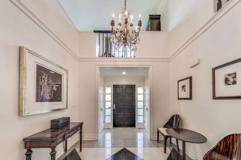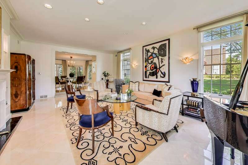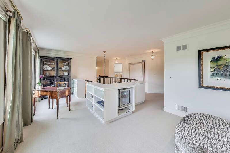 ARCHITECTURAL MASTERPIECE IN INDIAN RIDGE Welcome to 2418 Saranac Lane, a 4 bedroom, 5.1 bath residence that redefines sophistication in Glenview's coveted Indian Ridge, known for its tree-lined streets, three private lakes, and five-acre park with playground, basketball, and new pickleball courts. Enhanced with architectural details by Chicago's Scott Himmel, this over 5,000 square foot home blends timeless design with effortless livability. Completely renovated in 2004 with two additions, the home showcases extensive built-ins throughout the family room, library, living room, and upstairs hallway. The iconic de Giulio kitchen anchors the main level, featuring a full-size Sub-Zero refrigerator and freezer, two new dishwashers, a custom silver leaf hood, pot filler, instant hot water filtration system, and a striking crema marfil marble slab backsplash and flooring. A dramatic formal living room with soaring ceilings is finished with crema marfil marble floors, offering the ultimate setting for large-scale entertaining. A refined walk-in custom wet bar with cabinetry, glass shelving, and a serving counter enhances the entertaining experience, perfectly positioned between the library and lounge. Three newly installed gas starter fireplaces add warmth and character, while a private library with custom built-ins and a main-level laundry and mudroom add both elegance and convenience. Upstairs, a sitting room provides a flexible retreat for reading or relaxation. The expanded primary suite is a luxurious sanctuary with two custom walk-in closets and a spa-inspired bath adorned with striking Michael Angelo black marble vanities and countertops. Three additional bedrooms complete this level, two with ensuite baths, along with a fourth full bathroom. The lower level offers over 1,700 square feet, creating a haven for recreation, play, and abundant storage. It also includes a dedicated office that could serve as a fifth bedroom along with a full bathroom. Step outside to discover private, lush grounds designed for both relaxation and entertaining. A spacious patio invites morning coffee or evening wine, while a custom irrigation and lighting system, new paver system, and brick driveway elevate the exterior. An epoxy-finished garage floor provides durability and style, and professionally designed perennial gardens ensure beauty in every season. The backyard is truly an extension of the living space, serene, inviting, and unforgettable. The community is served by Henry Winkelman Elementary, Field Middle School, and award-winning Glenbrook South High School. Distinctive, sophisticated, and truly one of a kind, 2418 Saranac Lane sets the standard for luxury living.