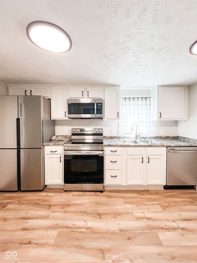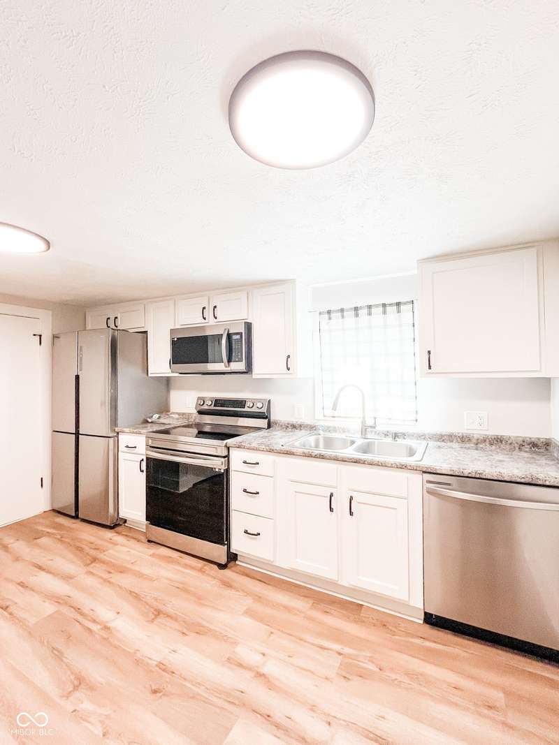 Enjoy the ease of move-in-ready living in this beautifully updated 2-bedroom, 1-bathroom ranch home located in Crawfordsville. This thoughtfully designed home blends the reliability of modern upgrades with the charm of an established neighborhood. Step inside the spacious 20'x15' living room with newer carpet that seamlessly connects to a remodeled 13'x12' kitchen. The kitchen features new vinyl plank flooring and comes equipped with stainless-steel appliances, including a dishwasher, micro hood, electric range, and refrigerator. The home has been extensively updated with a new gas furnace, central electric A/C, water heater, windows, flooring, light fixtures, and doors all installed at the end of 2023. The floor plan includes an 11'x10' primary bedroom and an 11'x7' second bedroom, both with carpet flooring. A separate 10'x7' laundry room is conveniently located on the main level and has new vinyl plank flooring. A completely remodeled bathroom rounds out the floorplan with a tub/shower combination, large vanity, and new lighting. Situated on a 0.13-acre lot, the property also features a spacious backyard and an oversized, 1-car detached garage that offers ample storage space and access from a rear alley. With its top-to-bottom modern updates and bright aesthetic, this home is a perfect choice for anyone looking for a turn-key property.