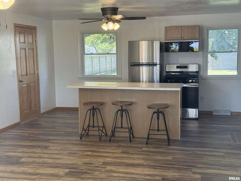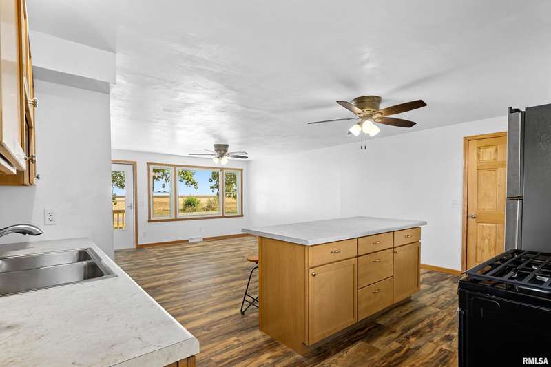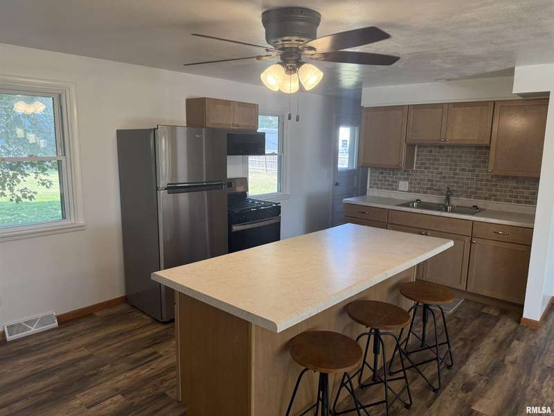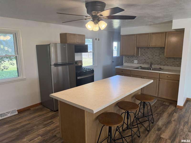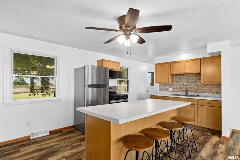 MOVE IN READY! This 3 bedroom 1 bathroom Ranch style home with Privacy Fenced 0.33 Acre Yard. Home shows like it's new construction! You will love the open floor plan with and all the well done updates. Kitchen has island/breakfast bar with new cabinets, counter top, backsplash and appliances. Main floor laundry with new washer and dryer and handy folding area/butler's pantry. Located on a dead end street with a field directly across. A few of the updates done this year are: Roof, appliances, laminate flooring, driveway, and kitchen & bath remodel. Home has vinyl replacement windows and vinyl siding. This is a great home and easy to show. Quick possession is available. Come take your tour today!