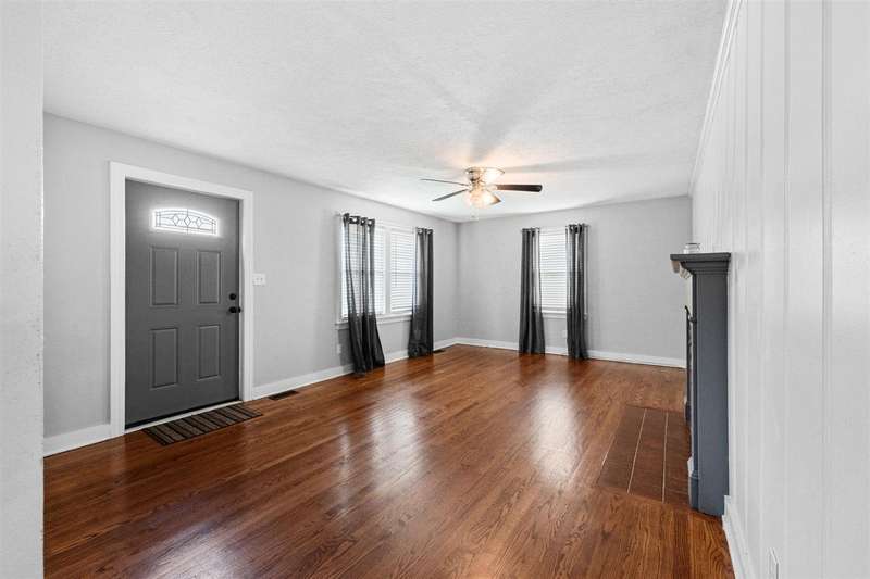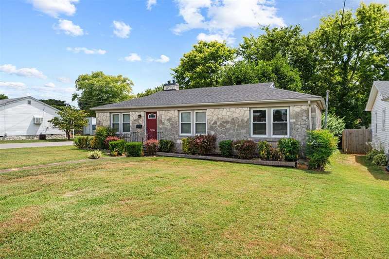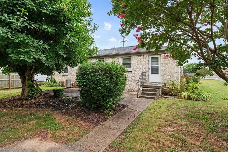 Situated on a corner lot across the street from TC Cherry Elementary, this cute stone home is solid as a rock and ready for a new owner! New roof in 2020, along with a full bath remodel. All new interior doors and fresh paint in 2020. Beautiful, real hardwood throughout and spacious living room with gas fireplace and stone/brick accents. Eat-in kitchen offers plenty of counter space for cooking and cabinet space for storage. You'll love the built-in corner china cabinet and tile backsplash. Outside, enjoy an extra large patio and storage shed. Call today for your private tour!