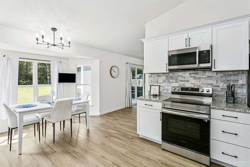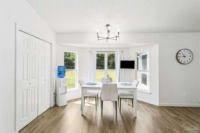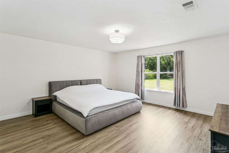 Welcome to this spacious and move-in ready 4-bedroom, 2-bathroom, split floorplan home offering 2,129 square feet of thoughtfully designed living space. Nestled on a generous 0.55-acre lot, this property combines comfort, style, and convenience. Step inside to find luxury vinyl plank (LVP) flooring throughout and an updated kitchen featuring modern finishes, sleek countertops, and stainless steel appliances. Both bathrooms have also been tastefully renovated, offering a fresh, contemporary feel. The home's open layout provides flexible living and dining options, while large windows fill the space with natural light. Outside, enjoy the expansive yard or relax in the screened porch. Roof and water heater-2024, HVAC-2016. Located just minutes from the interstate, this home ensures an easy commute to nearby beaches and military bases. Don't miss this opportunity to own a well-updated home on a spacious lot in a prime location!