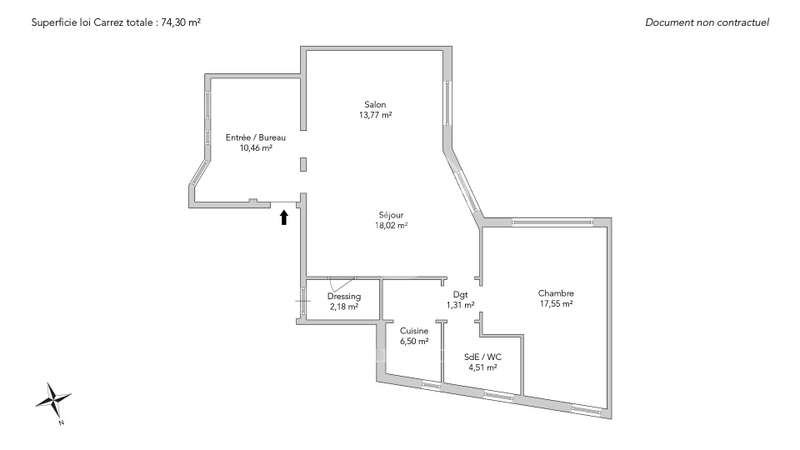 Ideally located close to all shops and subways in the Jasmin district, in a quiet street: rue Raffet. On the third floor by elevator of a beautiful 30's stone building with janitor, this 74.30sqm loi Carrez apartment features a spacious entrance that can be used as an office, a quiet double living room opening onto a planted central square, a separate kitchen, a spacious bedroom, a shower room with toilet and plenty of storage space. This high-potential property benefits from an easily adjustable floor plan, with the possibility of creating a second bedroom. This layout would offer two bedrooms, a south-west-facing through living room and an unobstructed view. A cellar completes this offer. A parking space is available at an additional cost of 60,000euros.