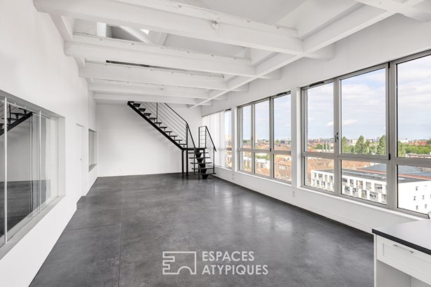 The highlight of the space: a 100 m2 private rooftop, a veritable panoramic terrace suspended above the city's rooftops. A rare space, perfect for all desires: a hanging garden, a summer lounge, an outdoor workshop?