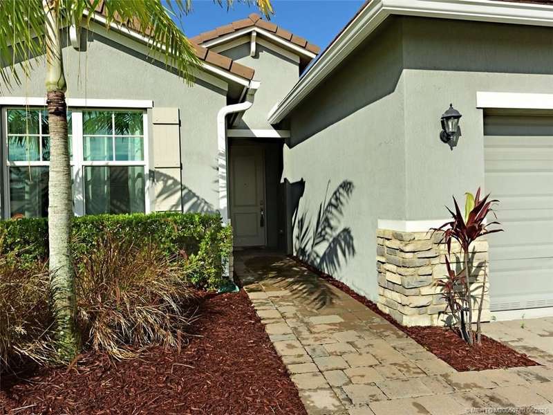 This lik?-n?w 3/2/2 home ??n ???n???n ??each offers a p?rfe??t blend of modern living and prime location, just minutes from the beach. The split floor plan provides privacy, while impact windows and doors ensure safety and preserve the view. The spacious kitchen features a large island, quartz countertops, high-end appliances, pantry and a decorative backsplash, flowing seamlessly into the great room. The master suite includes big walk in closet and a luxurious bath with dual sinks and a walk-in shower. Enjoy outdoor living with a pavered covered screened porch. Oversized 2-car garage. The home is equipped with smart technology & a security system. The gated community's amenities, include tennis courts, pools, and a golf course. With natural light flooding the open design, this home is ideal for full-time living or a coastal getaway! Close to shopping yet very private. Public water/sewer. Jensen Beach Elementary & Jensen Beach High schools.