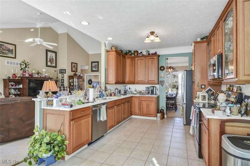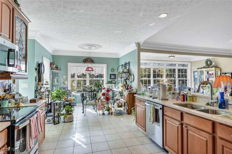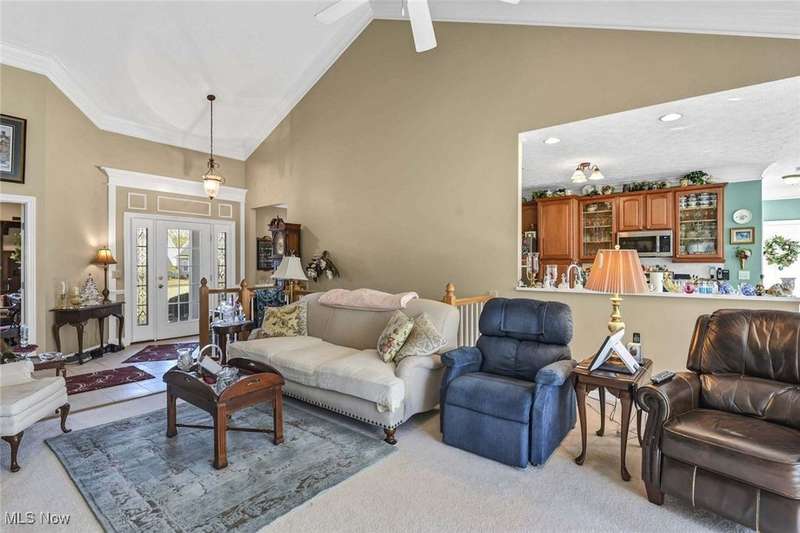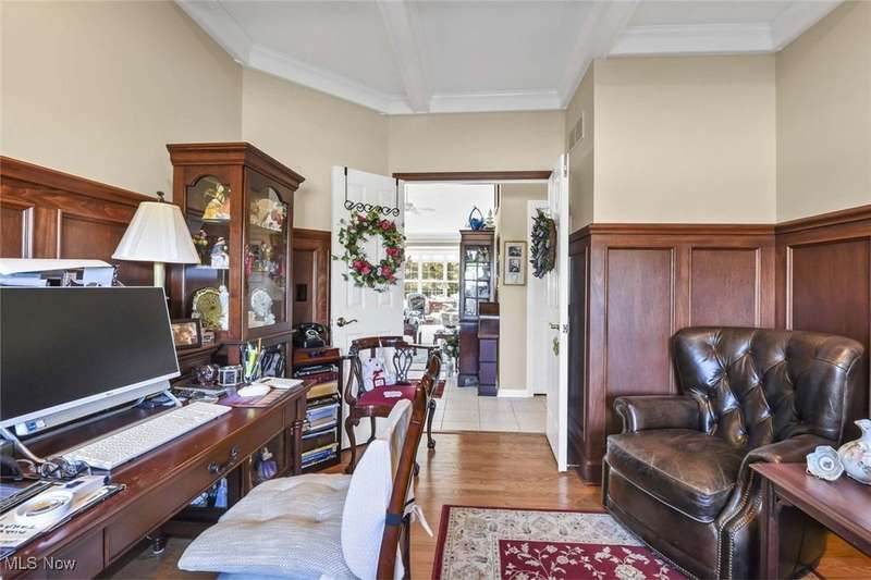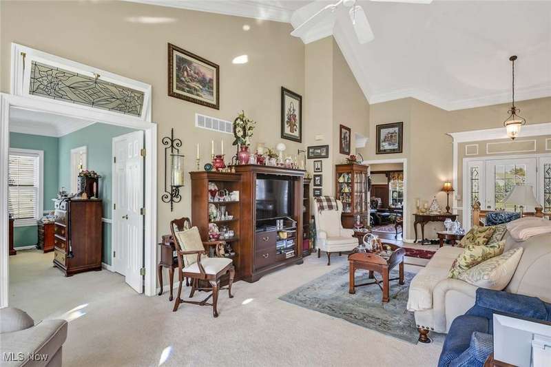 1st Floor Living with a comfortable cottagey feel! This former model home for Briar Lakes has upgrades galore and is situated on a premium lot with an expansive feel. Offering crown molding throughout entire home, Great Room with vaulted ceiling, Master Bedroom with a vaulted and coffered ceiling, Kitchen features quartz countertops with all new stainless appliances and leaded glass cabinetry and a Light & Bright Morning Room, Florida Room with skylights, Den with coffered ceiling, mahogany paneling & shelving includes hardwood flooring. Brick patio overlooking beautifully landscaped grounds. Improvements include: HVAC (2015), Roof (2020), windows (2015), Hot Water Tank (2020) and heated garage with water and includes custom made Amish cabinets. This one owner has been meticulously maintained and cared for. Enjoy views of the private lake with fountain and fireworks from Crushers Stadium from the covered front porch.