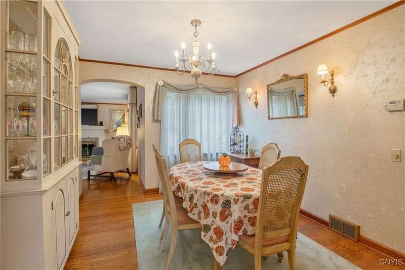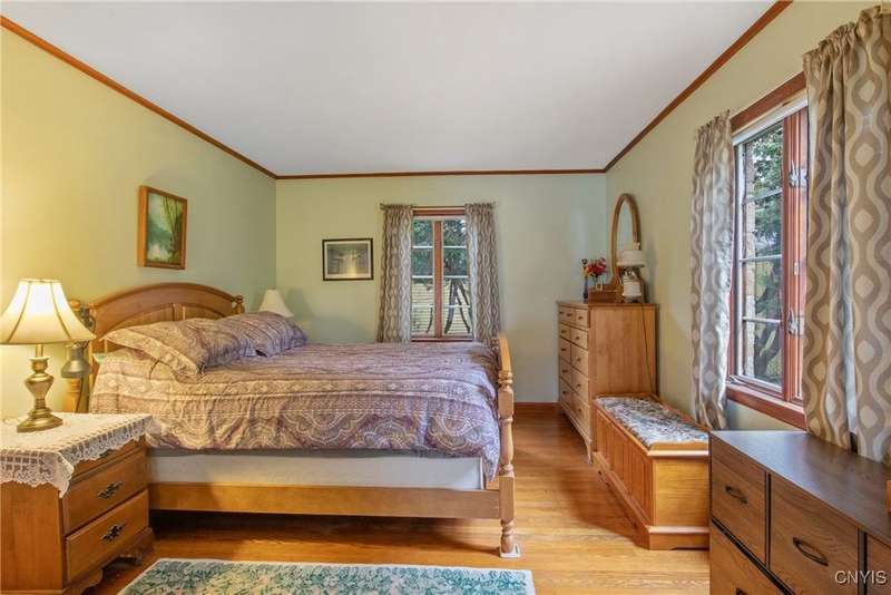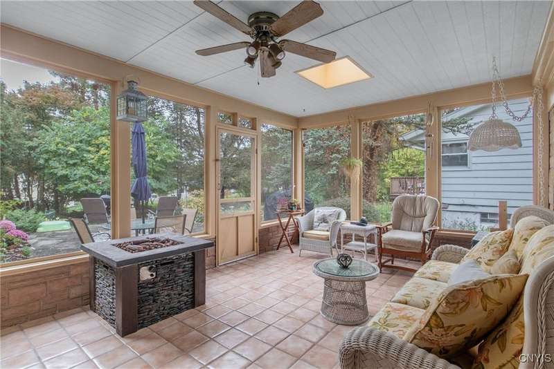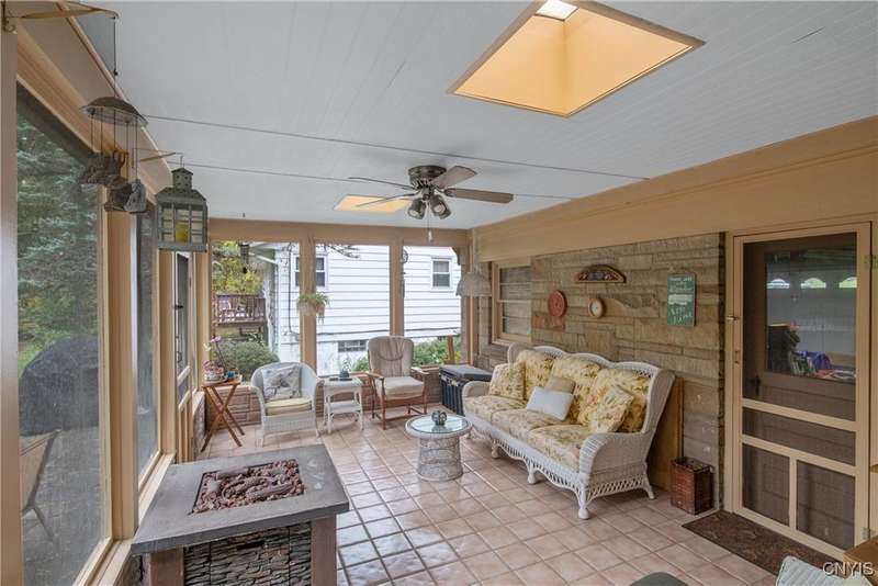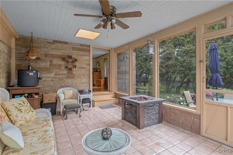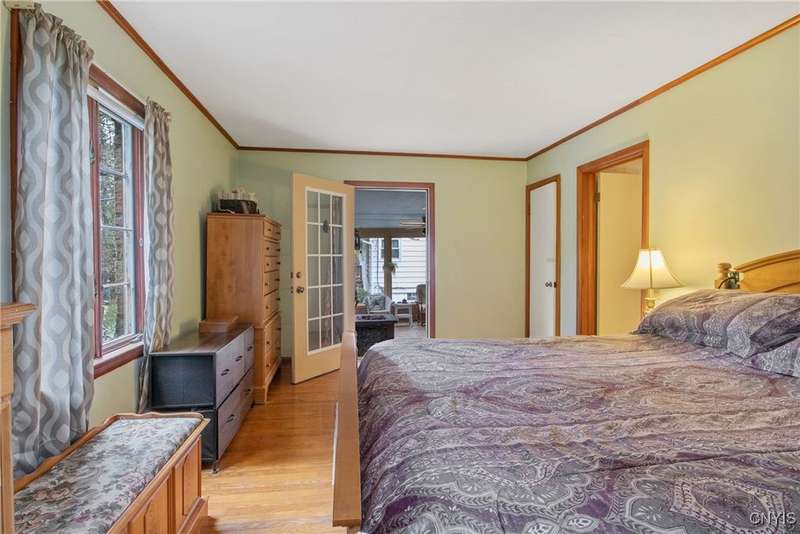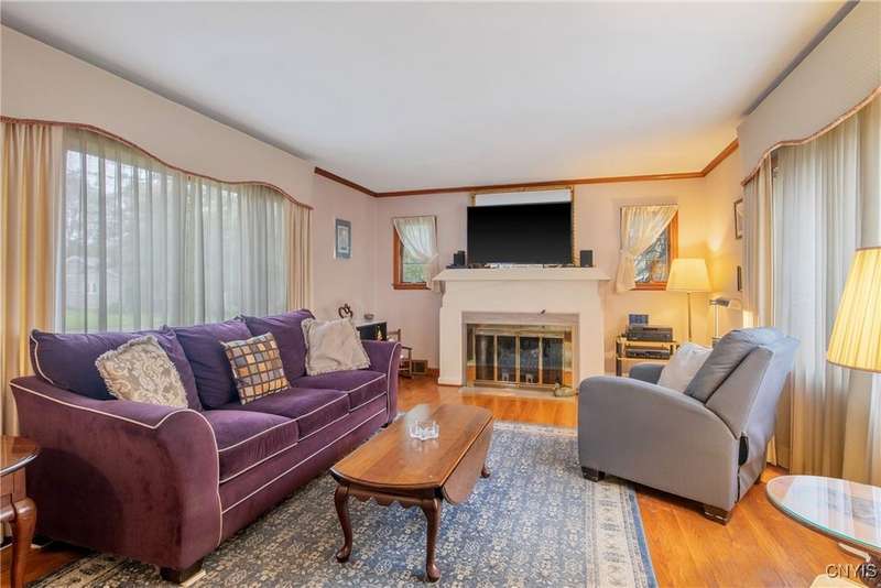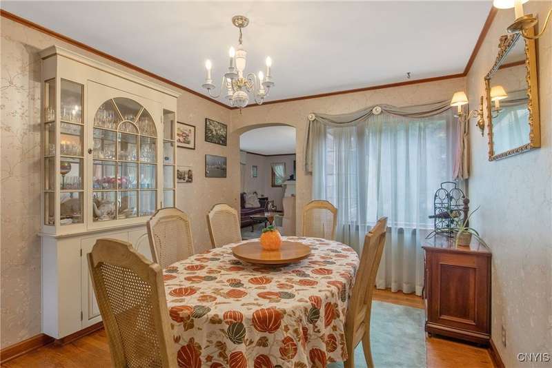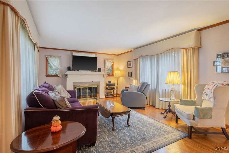 Quiet street in sought after, Orvilton neighborhood, in Dewitt, with award winning Jamesville-Dewitt Schools. Charming, cape cod with stone exterior. Primary bedroom on the 1st floor, with full bath off, make this your forever home. Enter from the foyer to the fireplaced living room with curved archways. Hardwoods in most rooms on the 1st floor. Huge formal dining room. White kitchen with 2 pantries. Large, primary bedroom in the back area of home views the pretty gardens. Full bath off. Den/office/bedroom near the dining room has a door to the side yard, so can be a flex room. Screened in Sunporch ( has Plexi-glass inserts ), 2 skylights, & has a door to the backyard, will be a favorite area to view your perennials & enjoy your firepit. Second floor has 3 large bedrooms, full bath, & walk in attic. Lower level will be a surprise to you with a beamed ceiling, fireplaced family room, adding another area to entertain family & friends. Laundry room, storage area, workshop with walkout exterior door, makes this a smart home ! Convenient location to highways, 8 minutes to hospitals & Syracuse downtown.