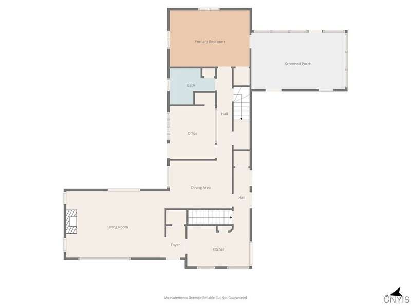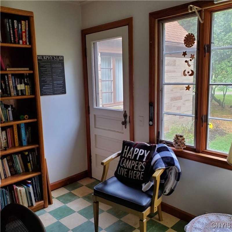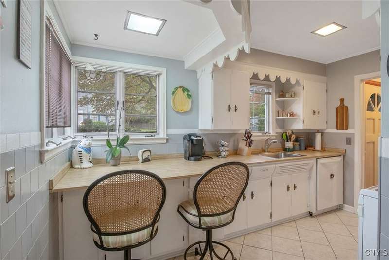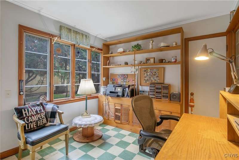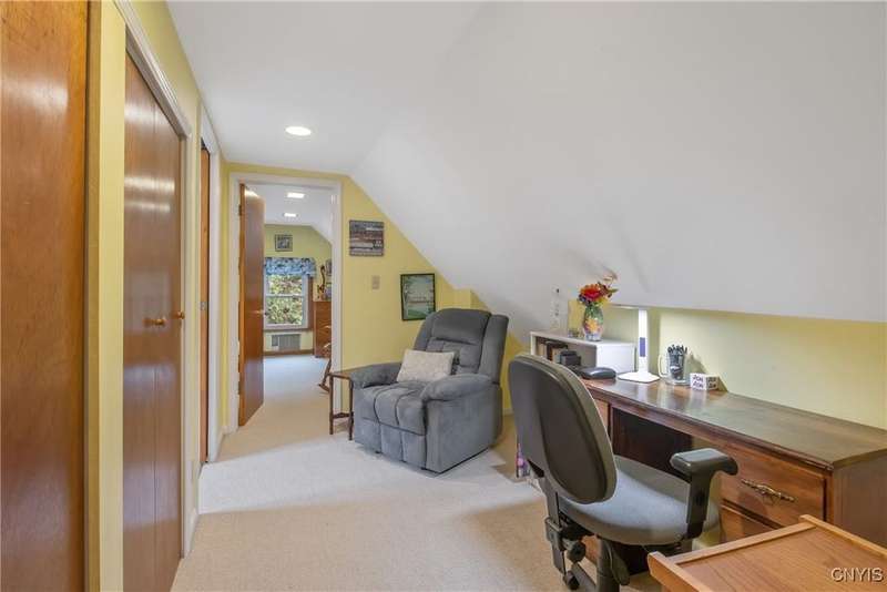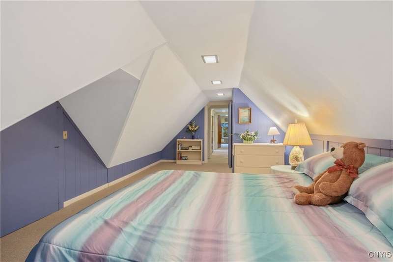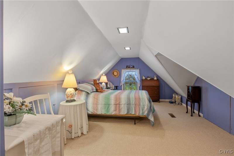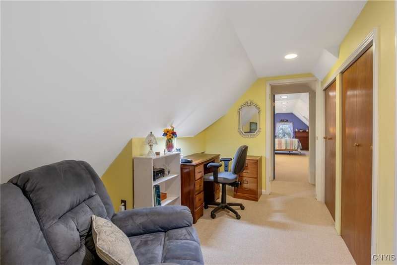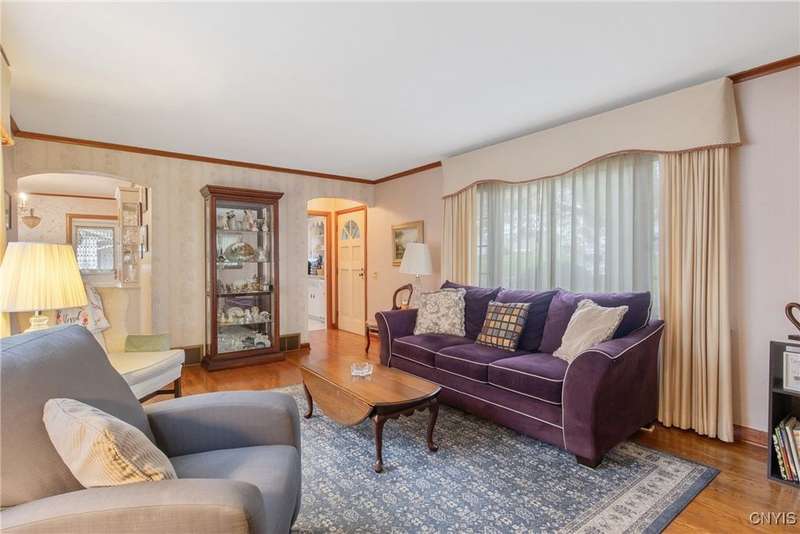 Quiet street in sought after, Orvilton neighborhood, in Dewitt, with award winning Jamesville-Dewitt Schools. Charming, cape cod with stone exterior. Primary bedroom on the 1st floor, with full bath off, make this your forever home. Enter from the foyer to the fireplaced living room with curved archways. Hardwoods in most rooms on the 1st floor. Huge formal dining room. White kitchen with 2 pantries. Large, primary bedroom in the back area of home views the pretty gardens. Full bath off. Den/office/bedroom near the dining room has a door to the side yard, so can be a flex room. Screened in Sunporch ( has Plexi-glass inserts ), 2 skylights, & has a door to the backyard, will be a favorite area to view your perennials & enjoy your firepit. Second floor has 3 large bedrooms, full bath, & walk in attic. Lower level will be a surprise to you with a beamed ceiling, fireplaced family room, adding another area to entertain family & friends. Laundry room, storage area, workshop with walkout exterior door, makes this a smart home ! Convenient location to highways, 8 minutes to hospitals & Syracuse downtown.