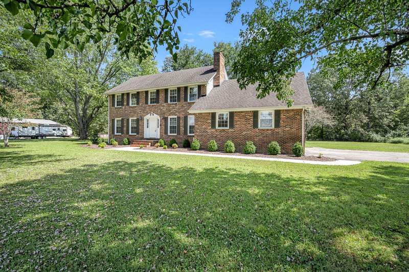 This lovely two story home features 5 bedrooms, 3 baths and is nestled on approximately 2 acres. It boasts numerous upgrades, including freshly painted interior, new flooring/ and replacement windows throughout, eat-in kitchen w/ re-faced cabinets, granite countertops, new stove, disposal, and faucets. Offers a family room w/fireplace, formal living room, separate dining room, two central heating and air conditioning elect. units, 2 car garage, storage bldg., paved drive and more. Just minutes from Tims Ford Lake. Owner/Agent.