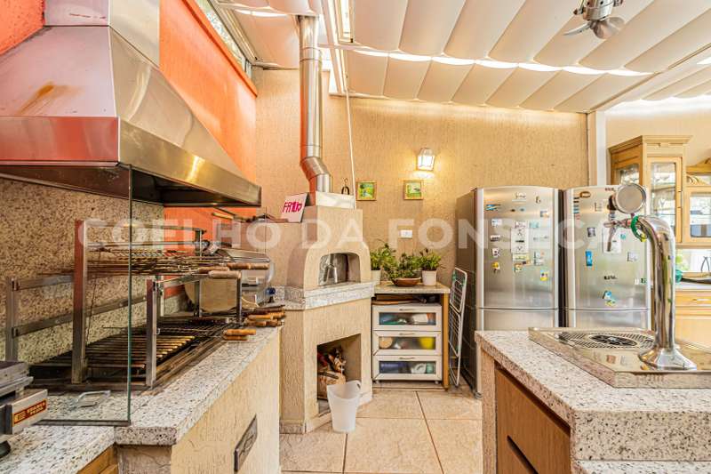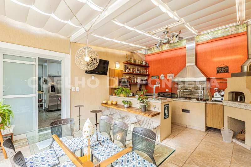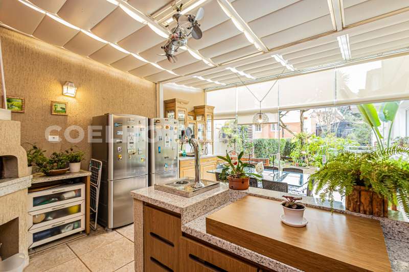 3 suítes espaçosas, sendo a master com closet senhor e senhora, living com lareira e sala de jantar, espaço gourmet super equipado, com churrasqueira, forno de pizza, fogão cooktop, choperias e ponto pra TV, aberta pro agradável jardim, além de um salão que pode ser usado de acordo com a necessidade. Vaga coberta pra 4 carros
