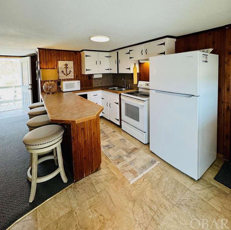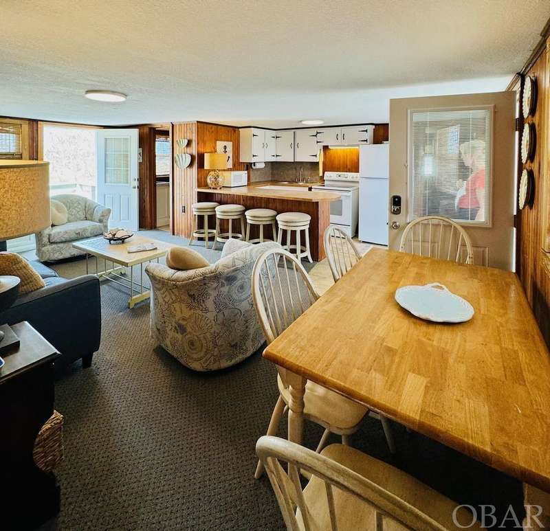 Relax and Enjoy your Ocean Front cottage! Adorable beach box w/ two bedrooms and bath plus ocean side En-Suite! Three bedroom/two bath total. Open floor plan. Cozy, real tongue and grove wood, back deck and covered front deck/porch to rock your worries away. Wine down at the dune, Walk over the dune to enjoy the beach/ocean, Walk minutes down the beach to eat at Fish Heads or Fish at The Outer Banks Pier! Your own Beach Oasis! Shore Peace! Enjoy the ocean front sun rises! With a few updates, rents could be even higher!