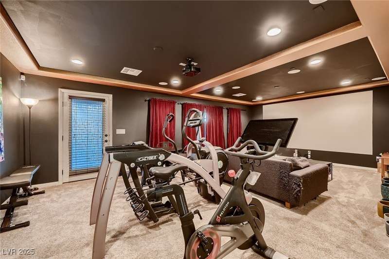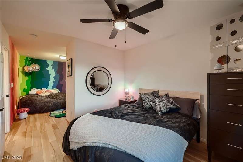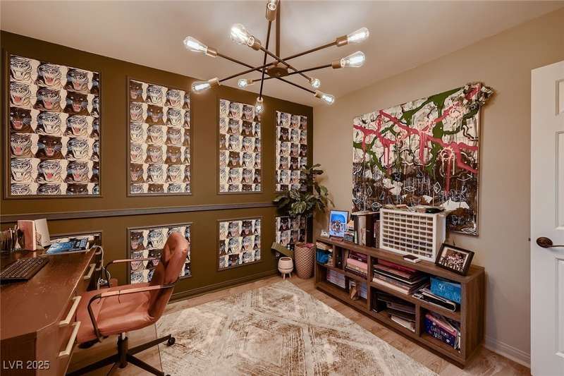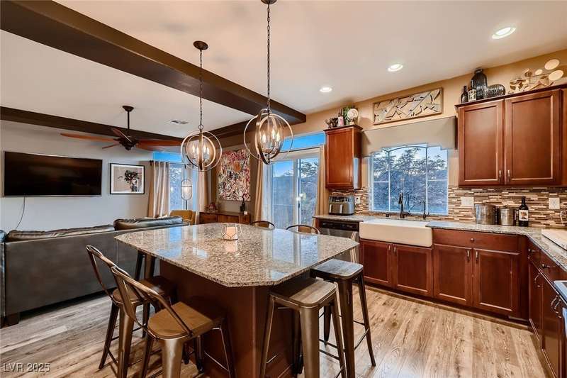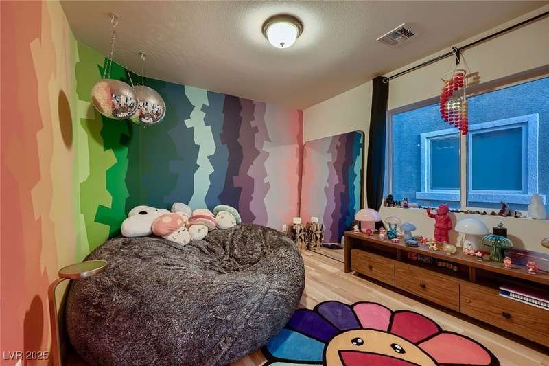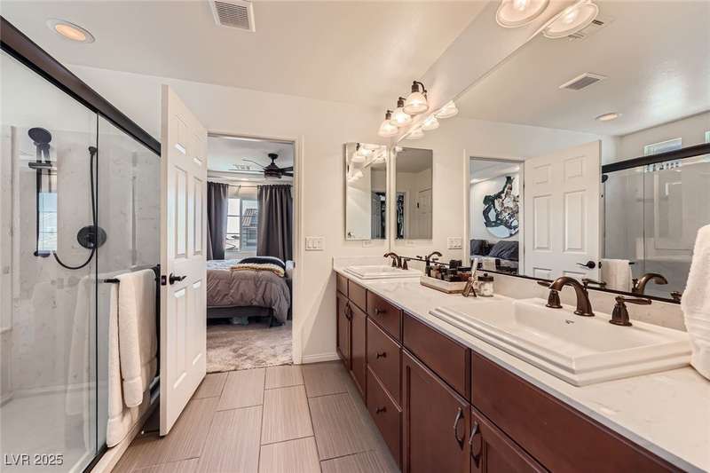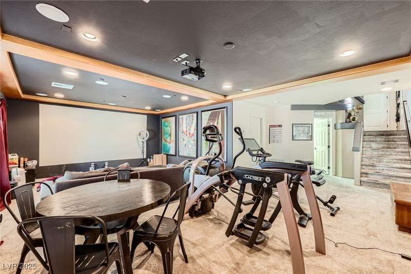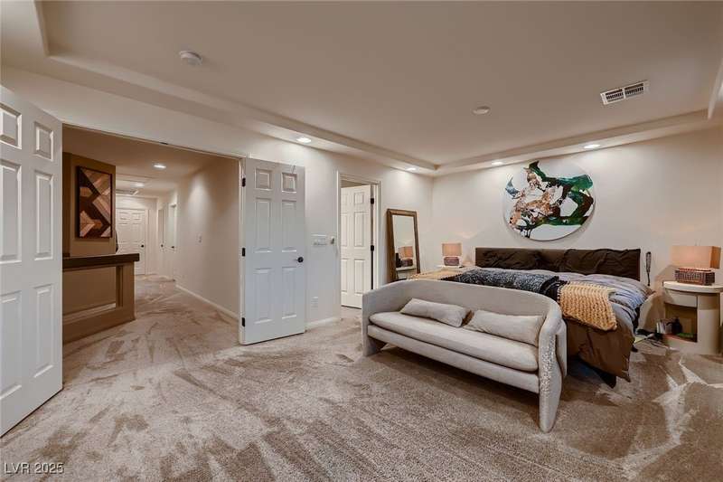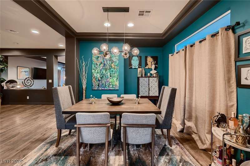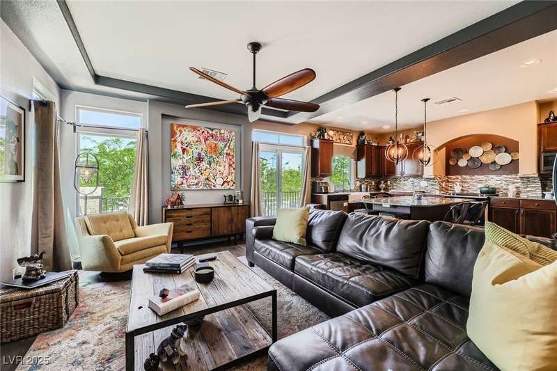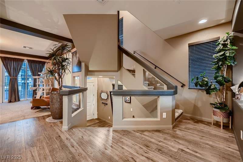 Meticulously maintained tri-level home, in the highly sought-after Coronado Ranch community. Low HOA of just $35/month & equipped with solar panels, this home is both energy-efficient and cost-effective. Attention to detail & upgrades throughout—crown molding, designer light fixtures enhance the home. Main living level boasts an ideal open-concept layout with two private balconies, for a seamless indoor-outdoor living experience. Spacious living room & cozy family room sit adjacent to the formal dining area, for versatile gathering spaces. Kitchen is complete with granite countertops, top-of-the-line stainless steel refrigerator, & a casual dining space. Downstairs, a huge media room features a projector system & private access to the generously sized backyard with covered patio & no rear neighbors. Upstairs, retreat to your expansive primary suite with space for a sitting area or office setup leading to a luxurious en-suite bathroom with walk-in shower & custom walk-in closet.