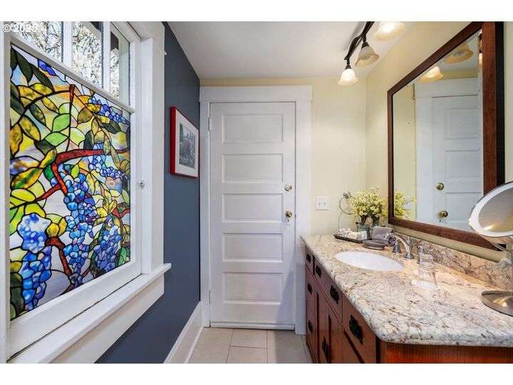 This is a really special property, rich in history and currently the last permitted Bed and Breakfasts in Portland. The Fulton House. There are many opportunities as the home has four suites plus one more bedroom for a total of five. There are also five full bathrooms. The top floor bedroom has a kitchen and access to the roof top deck with mountain and territorial views. The lot is a corner so the property could be converted to a duplex as there are entries from both streets. The lot could also be divided as zoning would allow another home. Another idea would be add a garage with an ADU above, or middle housing, just so many options. As it is now it would be a terrific family home. There is a family room on the lower level with one bedroom, three of the bedrooms are on the second floor and the remaining bedroom is on the third floor. Beautiful stained glass and two covered decks in addition to the rooftop. Lovely fenced yard with another patio and water feature. Just a short distance from Zupans and other restaurants and shops. It is a must see. Open House Sunday 10/19 1-3pm