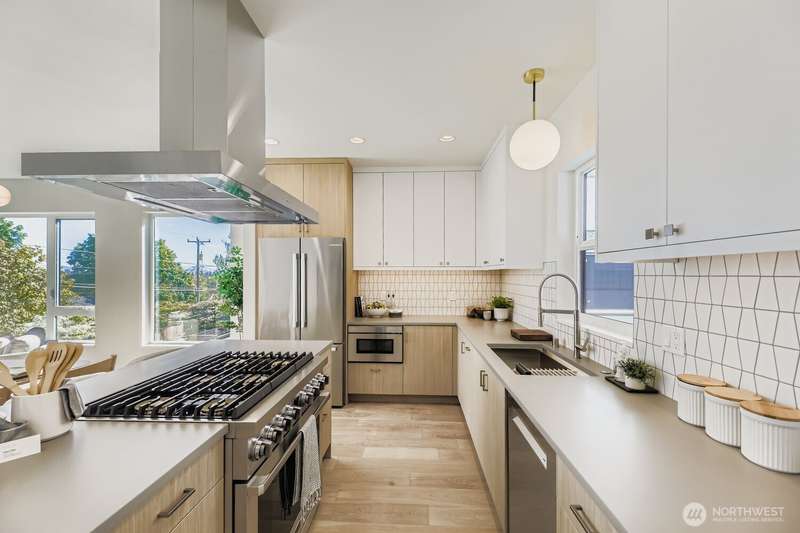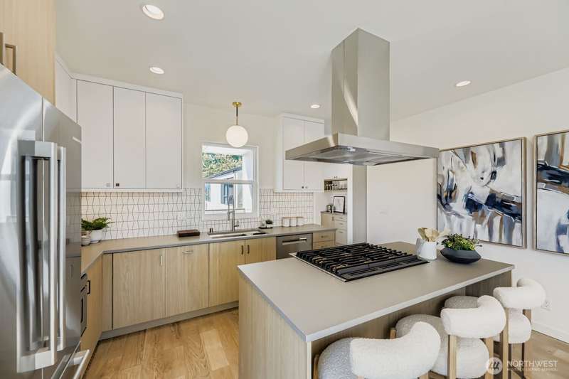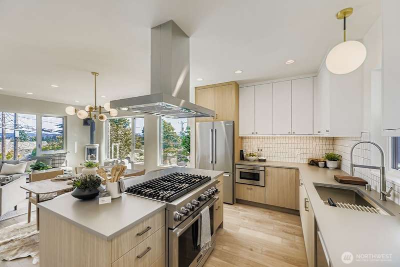 Experience everything Bryant has to offer in this beautifully constructed new home. Walk to University Village, Met Market, PCC, restaurants, breweries and more. One block from Bryant Elementary. Main level has built in entry storage and a guest suite that can be used as a bonus room, office, MIL. Features include a chef’s kitchen with six burner gas range, looking onto your living area with Jotul gas fireplace, Lake Washington, Cascade, and Rainier views! Three bedrooms upstairs including a primary suite with vaulted ceilings, and different views from each bedroom. More highlights include a one car garage, fenced yard, and a deck off the kitchen with amazing afternoon sun. HOA dues cover home owners insurance policy.