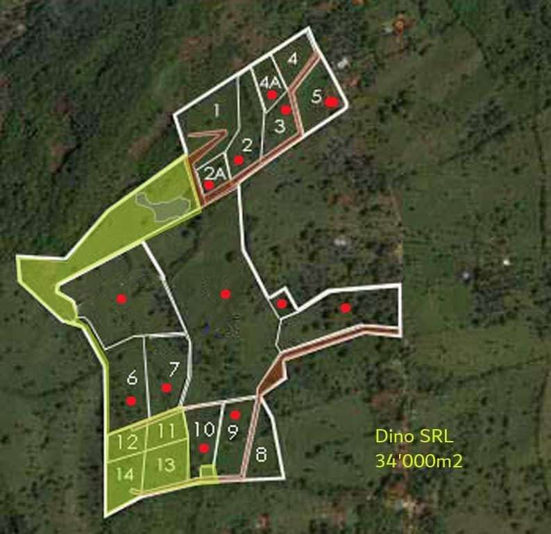 1. 4 parcels of 14.000 square meters in the upper part of the property. These are building lots of 5,000 m2 for US$ 250.000, 2.400 m2 for US$96.000, 1.900 m2 140.000, 6.000 m2 for US$300.000