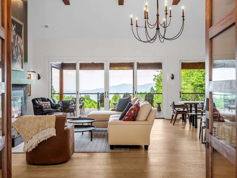 Recently completed with a modern edge and stunning mountain views in the gated community of Bright's Creek. Experience refined mountain living in this newly built, tastefully decorated home set on a large, beautifully landscaped lot inside the gates of Bright's Creek Golf & Equestrian Community. Enjoy panoramic views of the Blue Ridge Mountains from multiple outdoor living spaces, including an expansive deck, a wonderful fire pit area, and a covered lower-level patio with a stone fireplace?perfect for year-round entertaining. Inside, the open-concept design, quality finishes, and natural light create a warm, inviting atmosphere. With a Brights Creek Club membership residents enjoy access to Bright's Creek's championhip Fazio designed golf course, saline pool, bowling, trails, tennis/pickleball courts and two dining options making this an ideal luxury retreat.