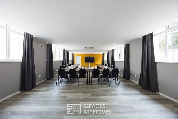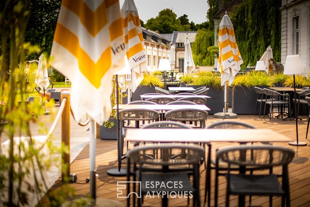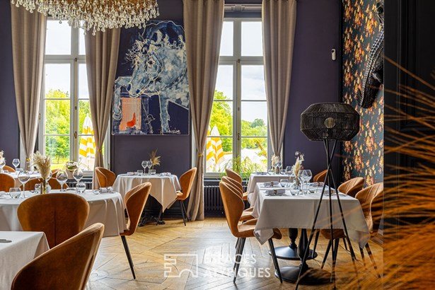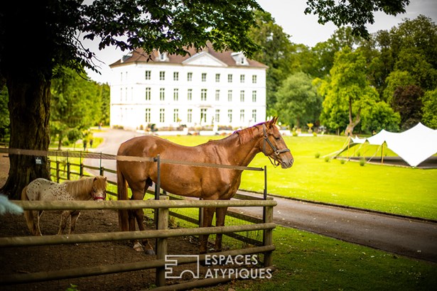 The renovated outbuildings extend the experience: converted former stables, seminar and reception spaces, a 7-meter-high nomadic marquee for hosting weddings, seminars, or large-scale corporate events. The terrace of over 300 sqm offers an unobstructed view of the landscaped park. The complex is organized over several hectares of perfectly maintained greenery, sheltered from view, with different outdoor spaces with varied atmospheres: lake, horse pastures, and well-kept landscaped perspectives.