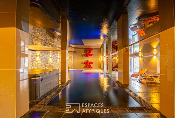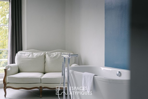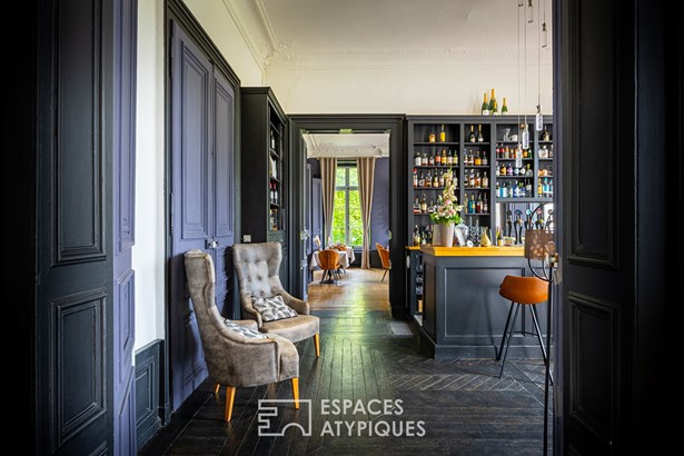 Behind the discreet driveway lined with meadows and century-old trees, the 19th-century chateau is revealed. The reception rooms magnify the elegance of the place: high ceilings, herringbone parquet floors, delicate moldings, and historic fireplaces are enhanced by contemporary and meticulous decor. The atmosphere combines period charm with modern comfort. The estate currently has 7 perfectly appointed accommodations: 4 elegant suites, a double family suite, and two additional bedrooms, thus providing immediate accommodation capacity.