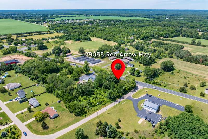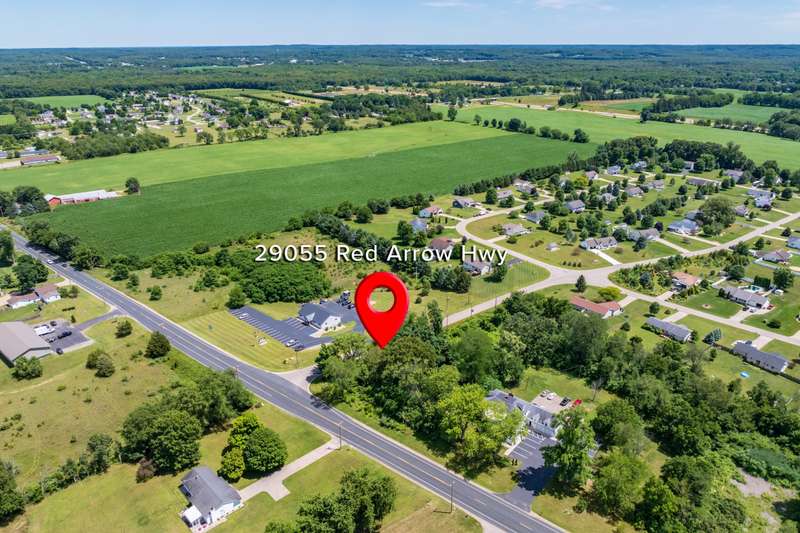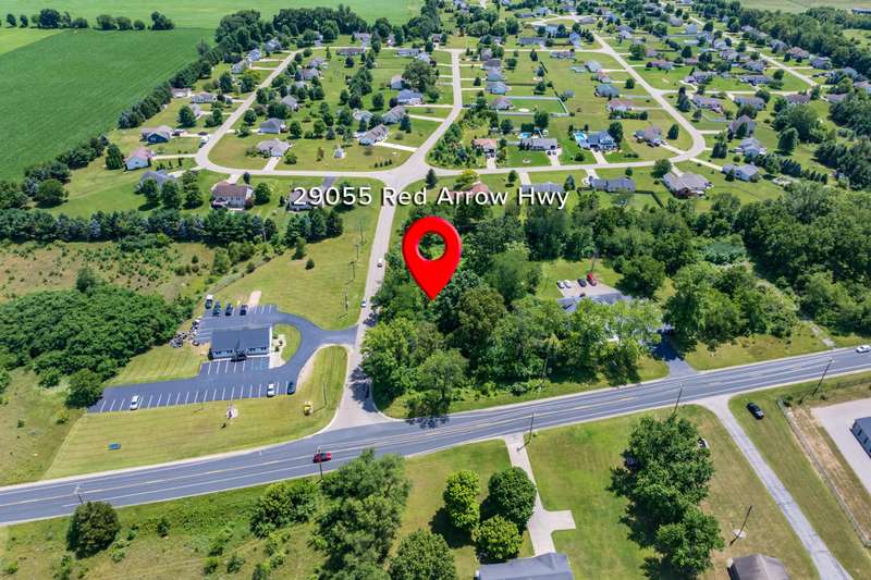 Don't miss this 150 feet of frontage on highly visible Red Arrow Highway. This corner lot offers easy access with 235.71 feet of frontage on Rolling Meadows. Lot is .73 acres with a completed perk test. Zoned General Commercial provides many business options that can be positioned in this great location. With high traffic counts that will continue to increase with the growth of this area, make this a must see.