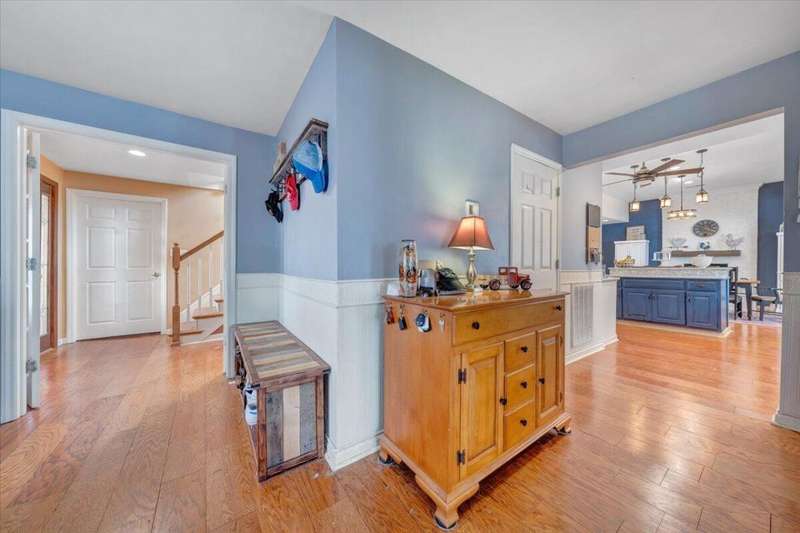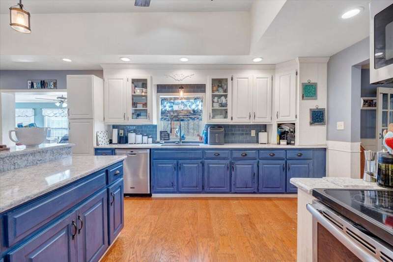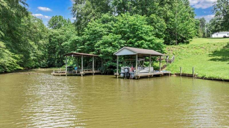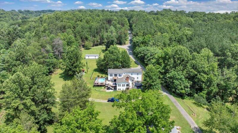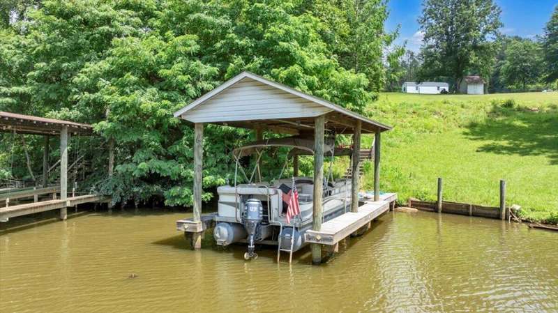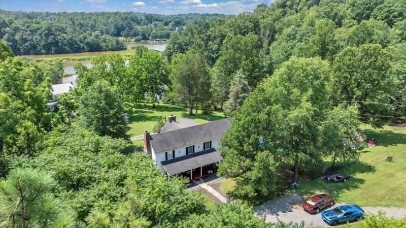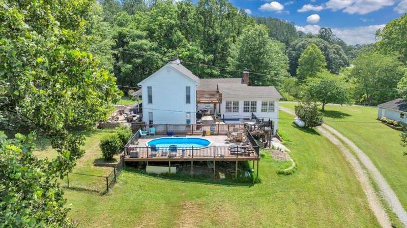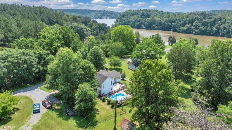 Experience Lakeside Living with this charming 3 bed, 3 bath waterfront farmhouse. Nestled on 2.69 acres and 80 feet of shoreline, this country gem will satisfy all of your family's desires. Walking through the front door you're greeted with a pleasant entryway and a large living room with deck access rounded off with a bedroom and bathroom. The spacious country kitchen features elegant quartz countertops, a cozy fireplace, and plenty of space for entertaining family and friends. Enjoy year-round beauty in the sunroom, which provides stunning views of the lake and access to your deck, complete with a swimming pool and hot tub for ultimate relaxation and lake views.