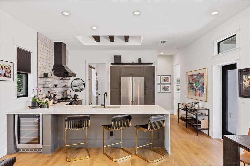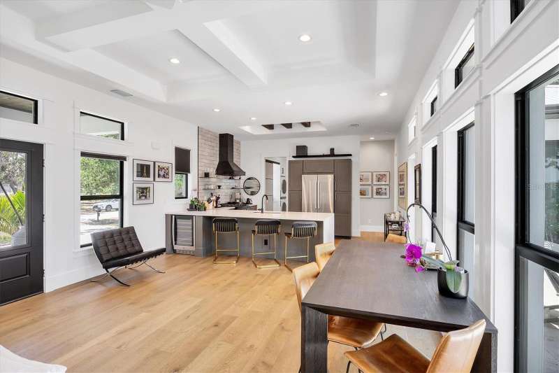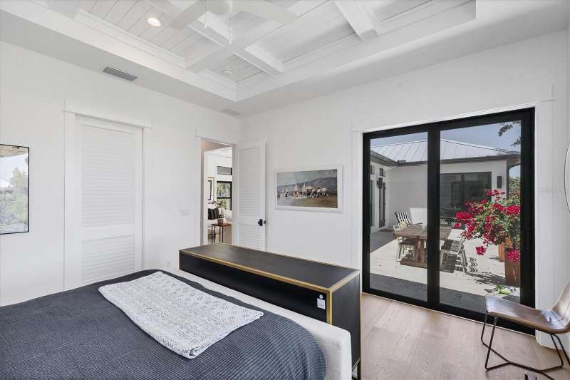 Significant price Improvement!! Why wait to build when you can experience the perfect blend of modern luxury, coastal charm, and tranquil waterfront living in this custom-built home, newly completed in 2024. Designed to meet current coastal building codes, this solid poured concrete residence offers peace of mind, elegance, and durability in a private, serene setting. Nestled on approximately 0.36 acres with 105 feet of frontage on the Amberjack Cove Waterway, the property offers navigable access by shallow draft or flats boat to Coral Creek, the Intracoastal Waterway, and the Gulf of Mexico. Whether you're an avid angler or simply enjoy nature’s quiet beauty, you’ll love casting for redfish, snook, and seatrout right from your private dock, complete with a boat lift. The home's Modern Farmhouse design is elevated by sophisticated designer finishes and thoughtful details throughout. Oversized real oak plank tile flooring flows seamlessly through the open layout, while custom millwork, wide baseboards, and decorative trim add character and charm. Impact-resistant windows and doors flood the interior with natural light, offering both safety and stunning views. Soaring 10’-11’ceilings are accented with coffered and detailed ceiling designs that enhance the home's spacious feel. The gourmet kitchen is a chef’s dream, featuring quartz countertops, Bosch appliances, a gas range and hood, a GE Profile wine cooler, soft-close cabinetry, and a built-in pantry with pullouts. The bathrooms boast floor-to-ceiling tiled showers, and the interior laundry room is equipped with large-capacity LG front-loaders and a convenient folding counter. Outdoor living is just as inviting, with front and rear porches finished in imported Turkish travertine, an outdoor BBQ pit and bar, and lush, low-maintenance landscaping that includes herb and vegetable gardens supported by drip irrigation. Additional features include a Galvalume steel roof, spray foam insulation for energy efficiency, and no HOA restrictions. This energy-efficient home offers a rare opportunity to enjoy waterfront living in a Zen-like, private retreat—just minutes from the world-renowned tarpon fishing of Boca Grande, the quiet coves of Bull Bay, and the pristine beaches of Florida’s Gulf Coast. Seller custom-built this home as his “forever” home, but has now elected to move closer to family. Furnishings available via a separate contract if interested
