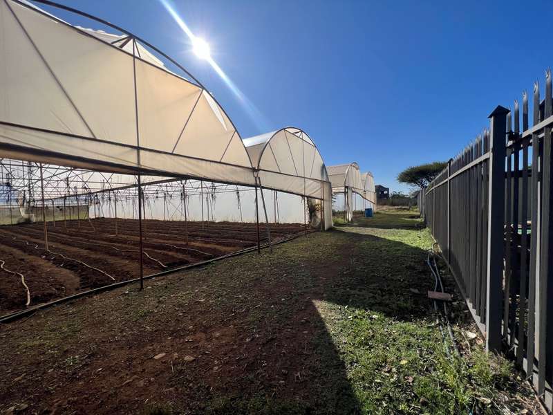 Welcome to the description of the 4-hectare farm...... This picturesque property, is situated on lush and fertile land, encompassing a total area of 4 hectares (40,000 square meters). Let's explore the various features and amenities, that make this farm a desirable place. 1. Fence: The farm is enclosed by an 18-line fence, providing security and privacy to the entire property. 2. Greenhouses: There are two double greenhouses on the farm, providing ample space for cultivating plants and crops. These greenhouses, are ideal for growing a variety of fruits, vegetables, or flowers. 3. Boiler: The farm is equipped with a boiler system, specifically designed for greenhouse irrigation. This ensures that the plants receive the necessary water, and maintain optimal growing conditions. 4. Arable Land: Approximately 2,000 square meters of land are dedicated to arable cultivation, providing an opportunity for farming activities or creating a flourishing garden. 5. Borehole: The property features a borehole, providing a reliable source of water, for irrigation and other agricultural needs. 6. Jojos: There are three Jojo tanks on the farm, which can store and supply water for various purposes. 7. Septic Tank: The presence of a septic tank ensures proper wastewater management and sanitation on the farm. 8. Chicken Coops: Four spacious and well-maintained chicken coops are available, providing a suitable environment for raising chickens or other poultry. 9. Alarm System: The farm is equipped with an alarm system, ensuring the safety and security of the property. 10. Manmade Dam: A sizable manmade dam with a capacity of 40,000 liters enhances the beauty of the farm, and can serve as a water source for irrigation or recreational activities. 11. Flatlet: A cozy two-bedroom flatlet is included on the property, offering additional accommodation options, for farm workers or guests. 12. Fence Control Unit with Braai Area: The fence control unit not only helps in managing the property's security, but also features a dedicated braai (barbecue) area, providing a delightful outdoor cooking and entertainment space. 13. House: The farm includes a spacious three-bedroom house with two bathrooms. The open kitchen design adds a modern touch, making it a welcoming space for cooking and socializing. 14. Pool: A refreshing pool... is available on the property, providing an opportunity to relax and cool off during hot summer days. This 4-hectare farm offers a blend of agricultural potential, comfortable living spaces, and recreational amenities. It presents an excellent opportunity for those seeking a serene rural lifestyle combined with farming or gardening aspirations. Call agent for viewing.