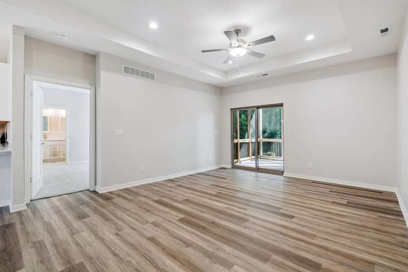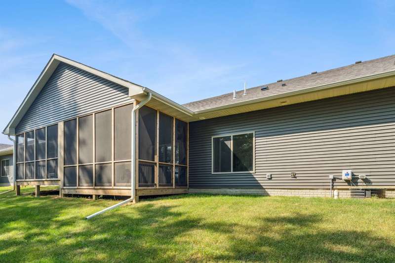 Located just a short golf cart ride from Denali's on the River and River Ridge Golf Course, this zero-entry condominium offers a spacious kitchen with quartz countertops, open to the living and dining areas. The stainless steel kitchen appliances are included! The primary bedroom features a bathroom with double sinks, as well as a walk-in closet with built-in shelving. A hall bathroom, a second bedroom, and a laundry room with a storage bench and pocket door complete the interior of the home. An oversized two-car garage is attached, along with a large screened-in deck off the living room. Call today for more information!