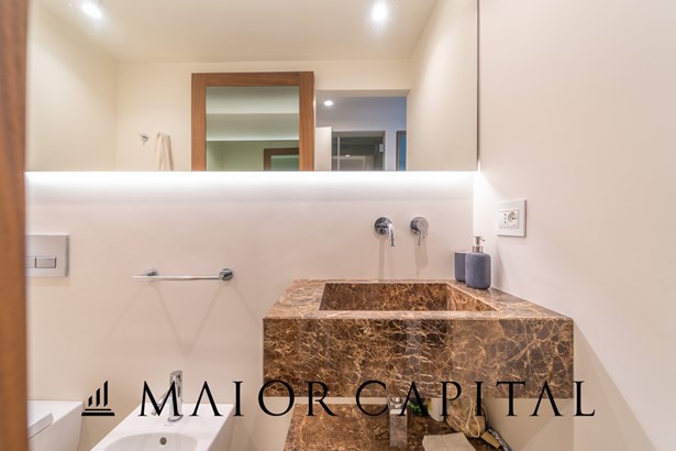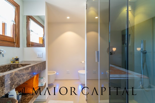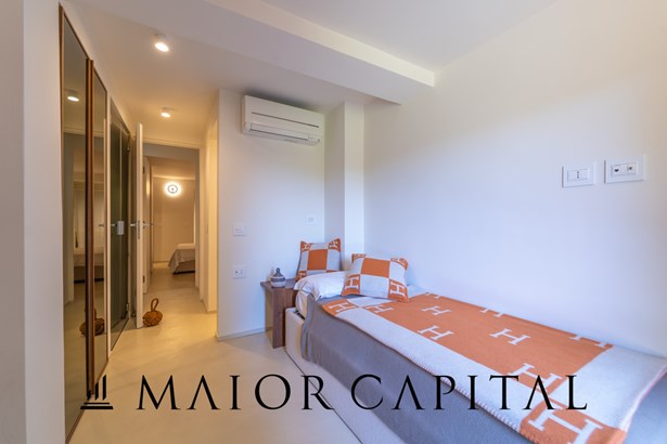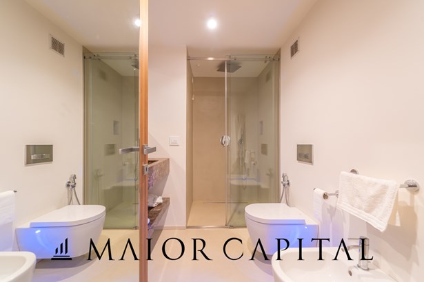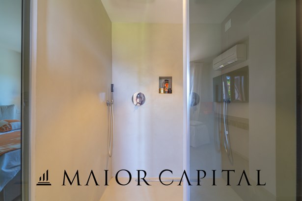 The property extends over two levels and boasts a private garden of approximately 1000 sqm, filled with lush and verdant plants that ensure privacy. This splendid outdoor oasis is equipped with every luxury and comfort. Here, you will find a spacious dining area complete with a barbecue and a fully equipped outdoor kitchen for open-air meals, a hot tub, and, accessible via a charming bridge, a swimming pool surrounded by teak sunbathing areas for relaxation. All these areas have been arranged to ensure complete privacy, even when there are guests, friends, and family.