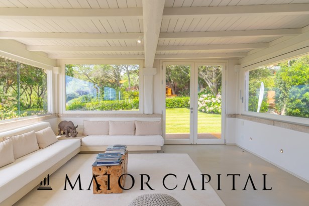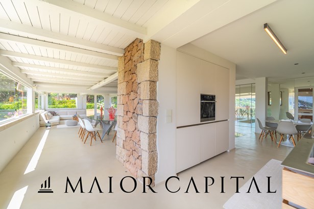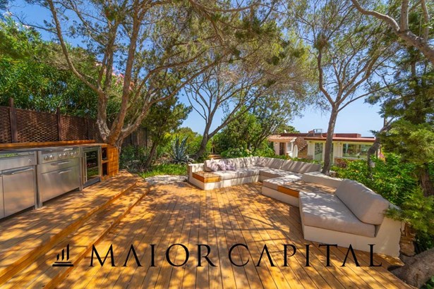 As you enter this magnificent property, you are immediately captivated by its refinement and sophisticated design. The minimalist and contemporary style, enhanced by natural materials, colors, and mirrors, creates an enviable atmosphere. The floor-to-ceiling windows not only fill the space with abundant natural light but also frame breathtaking views of Sardinia's azure seascape. To further enhance the villa's charm, there is an equipped sun terrace on the upper floor with loungers and carpets, perfect for enjoying the panorama and indulging in delightful aperitifs with friends, creating an intimate and romantic space.