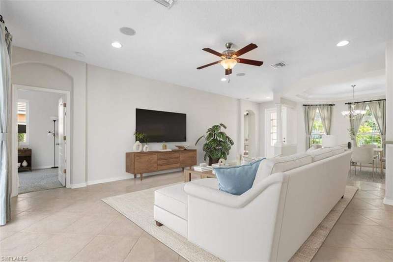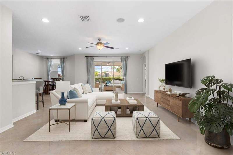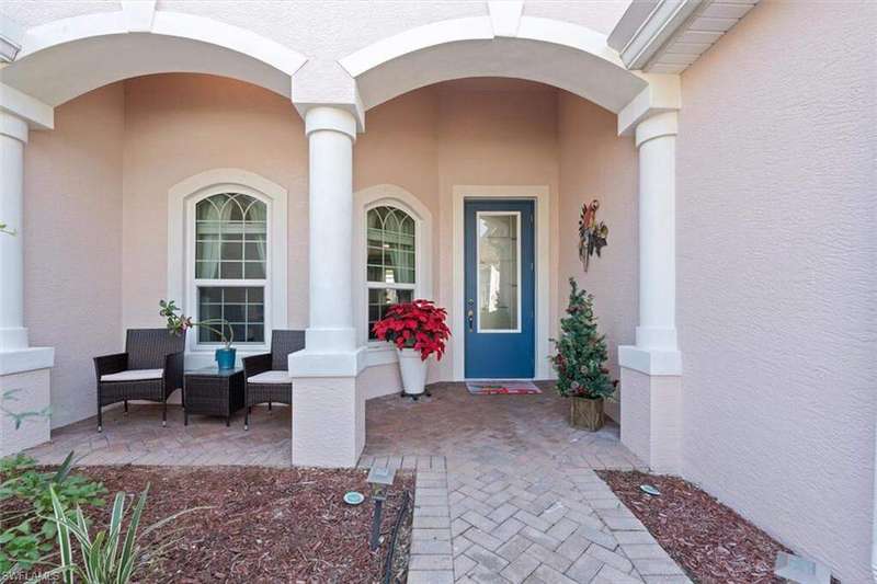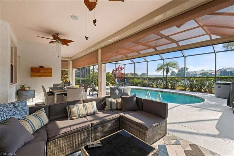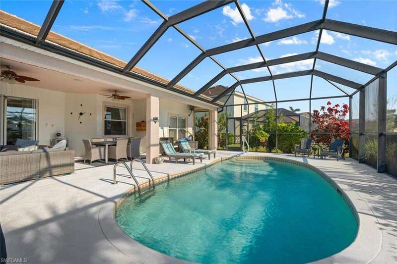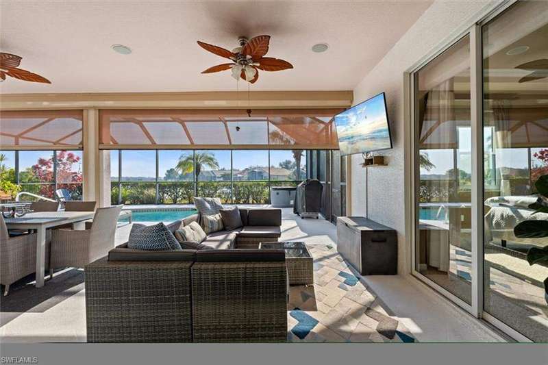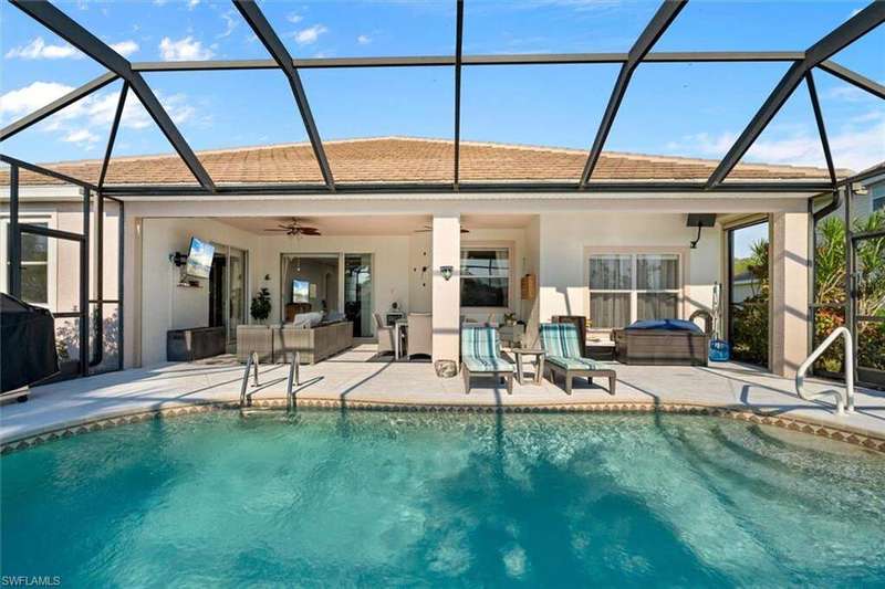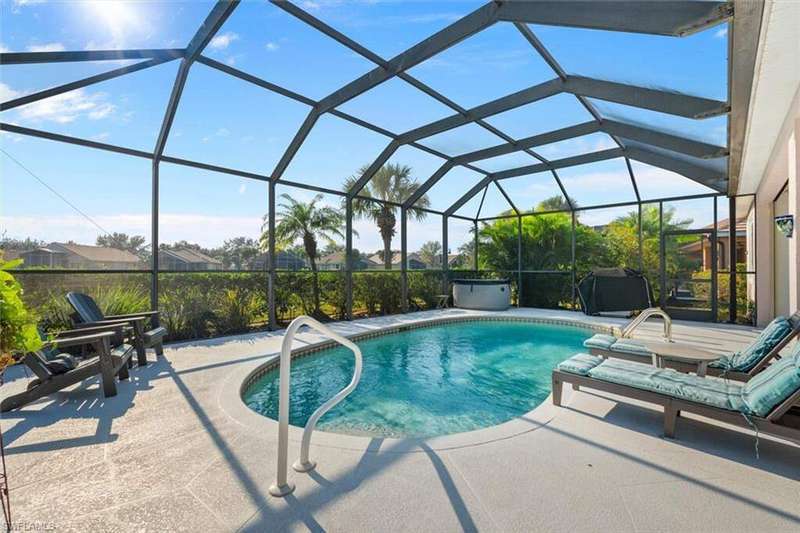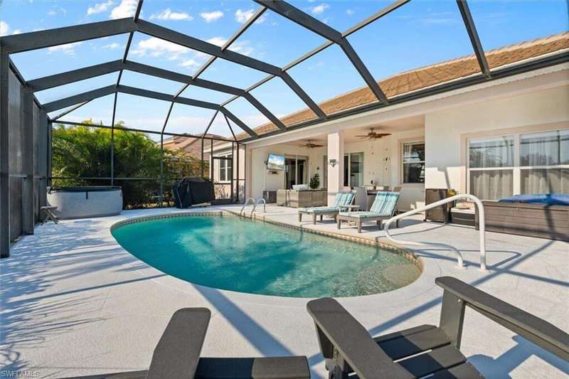 River Hall Paradise - Upgraded & SELLER PROVIDING BUYER A 1 YEAR HOME WARRANTY THROUGH HOME-TECH!! Discover luxury living in the gated River Hall community with this stunning 3-bed PLUS OVERSIZED flex room/den/office, 2.5-bath masterpiece, showcasing southern exposure and mesmerizing water views. Freshly painted inside and out, this meticulously maintained home boasts a new roof (2021), impact windows (2022), and motorized hurricane screens (2022) for effortless storm protection. Upgrades abound: a new AC with surge protector (2019/2022), whole-house air purification (2024), and a private hot tub (2022) elevate comfort. Dive into your resort-style pool, perfect for unwinding or hosting under the stars, framed by tranquil natural vistas. Inside, enjoy modern elegance, while outside, River Hall's top-tier amenities-full gym, pickleball, tennis, bocce, aerobics, massage services, and a Tot Park-cater to every lifestyle. Just minutes from Southwest Florida's best shopping and dining, this move-in-ready gem blends serenity with convenience. Priced to sell in today's market, this upgraded retreat won't last-claim your slice of Florida perfection now! Private showings available today! No Flood Insurance required...located in desirable Zone "X"