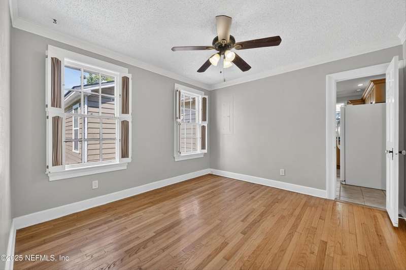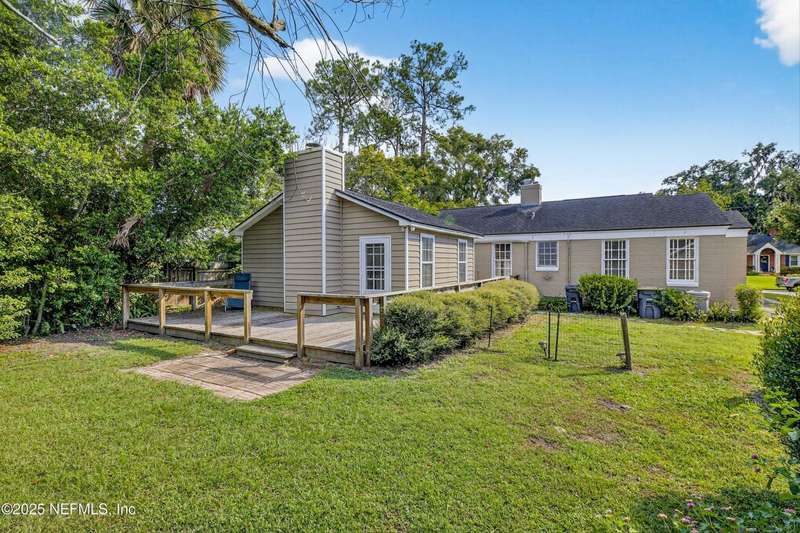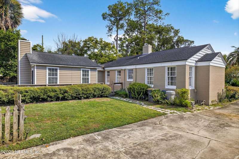 Classic brick 4 bedroom/2 bath home in the San Marco area. Bursting with character and charm, this home offers spacious living areas and timeless appeal. You will love all the natural light throughout and the beautiful wood floors. Living Room features a woodburning fireplace and built-in shelving. A separate formal Dining Room flows seamlessly into the Kitchen, which is well-appointed with Corian countertops, an abundance of cabinetry, a beverage bar with wine rack, and plenty of prep space for your culinary adventures. Rest and relax in the spacious Primary Suite, your personal haven complete with its own fireplace. The walk-in closet and large shower are dreamy. In the morning enjoy coffee on the large wrap around deck. Three bedrooms offer room for guests & family. The tiled Sun Room is perfect for an office or playroom. Shady backyard. The Inside Laundry Room offers extra convenience. The location is FABULOUS. Walk to Hendrick Ave School. Bike into San Marco Square.
