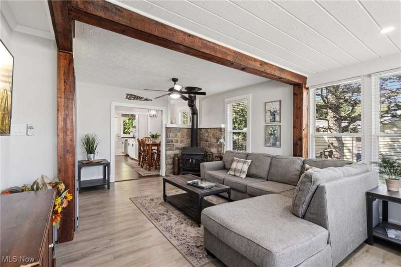 This charming "cottage style" home is minutes from historic Harbortown! Extensively updated with major improvements inside and out. Mechanical upgrades include a furnace (approx. 2018), central air (2024), tankless hot water tank (2025), and electrical panel. Comfort and efficiency have been enhanced with all new windows, doors, window blinds, added cold air returns, laundry room ductwork, and blown-in insulation. The kitchen and bath feature custom touches, including walnut shelving. One bath has a walk-in shower; the other offers a tub/shower combo. Updated appliances?refrigerator, dishwasher, and a farmhouse sink. Newer LVT hardwood-style flooring runs through the LR and bedrooms. The kitchen & dining room have newer hardwood flooring. The laundry area includes a utility tub plus a new washer and dryer. Additional updates include a rebuilt entrance to the basement with newer stairs and pulley system, as well as waterproofing completed in September 2025. Exterior improvements include a fully fenced yard with a picnic area, multiple seating areas, and a fire pit?perfect for entertaining. The garage roof has been replaced, along with new gutters and downspouts on both the home and garage. The garage also features a newer door, garage door opener and exterior keypad. The home's exterior was freshly painted in June 2025. Option to purchase furnished! Preapproved buyers are welcome by appointment.
