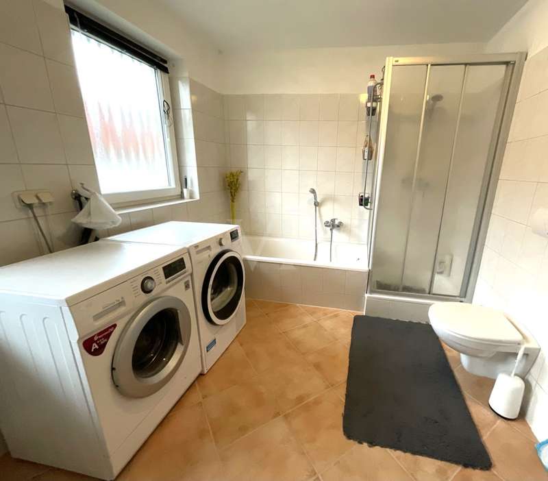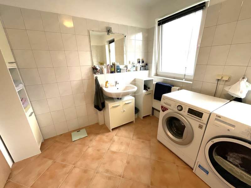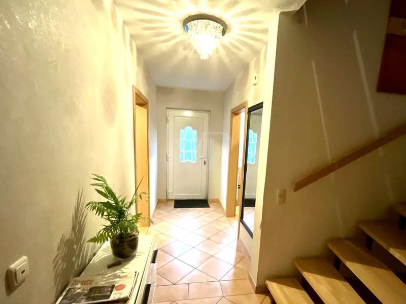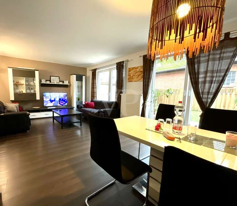 The house presents itself with the classic floor plan of a row house and will inspire you with its bright and neat living atmosphere. The house width of approx. 6.60 m gives the rooms a certain generosity, so that no one has to feel cramped! The approx. 27 m² living room presents itself bright and friendly through the floor-to-ceiling window elements and gives room for different furnishing possibilities. On the upper floor, this generous living ambience is further emphasized by the construction method with two full floors and also offers the larger family a cozy home with plenty of room for privacy! What's more, convenient for the larger family is that in addition to the family bathroom, which has a tub and shower and is equipped with a window, you'll also have access to a guest bathroom. If you want to avoid the morning traffic jam in front of the bathroom door, you could think about adding a shower in the guest toilet - there is plenty of space here. The converted attic also offers additional living space. Whether as a bedroom for the parents or as a retreat for the teenager, as an office or guest room - this room will certainly become a favorite for the occupant. The low-maintenance garden with the terrace, which extends over the entire width of the house, will offer you wonderful hours of relaxation not only on sunny days. Your car will find its place on the in-house parking space at the front of the row of terraced houses. A terraced house as a space miracle with a living ambience in which you can simply feel good!
