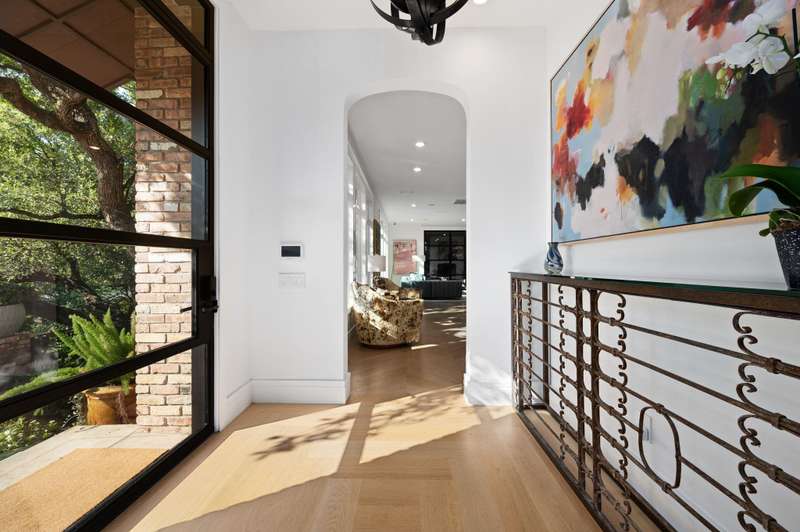 2406 Pemberton Pkwy is situated on a coveted private street with only a few residences, making it a rare offering in the heart of prestigious Pemberton Heights. This 4,874 sqft home (per FPG) combines timeless architecture with refined updates & exceptional outdoor living, all with direct access to Austin's beloved Shoal Creek Trail. Surrounded by lush, terraced landscaping & mature oaks, the residence is designed to maximize privacy & natural beauty. Expansive windows frame tranquil views of trees, creating a true sense of seclusion, while soaring ceilings and wide-plank wood floors add warmth and elegance. The chef's kitchen is equipped with Sub-Zero & Wolf appliances, a generous island with seating, butler's pantry, and abundant custom cabinetry--ideal for everyday living or entertaining on a grand scale. Open living and dining areas flow effortlessly to the screened-in porch with fireplace, perfect for year-round enjoyment. The primary suite is a serene retreat featuring a spa-inspired bath with dramatic book-matched stone, soaking tub, walk-in shower, dual vanities, and an oversized custom closet. Two additional en suite bedrooms & living area provide comfort for family or guests. A spacious media room and a designated office space with pocket doors can also function as the fourth bedroom if desired, offering flexibility for work, play, or additional sleeping space. Outdoor living shines with multiple terraces and an extraordinary east-side parcel featuring a putting green, fire pit, and seating areas, an unmatched extension of the property's usable space. Additional amenities include a formal dining room, designated laundry room, and a two-car garage with hydraulic lifts to accommodate four vehicles. Located minutes from Downtown Austin, UT, and the city's top dining and cultural destinations, this property offers a rare combination of privacy, convenience, and connection to nature, an exceptional opportunity in one of Austin's most sought-after neighborhoods.