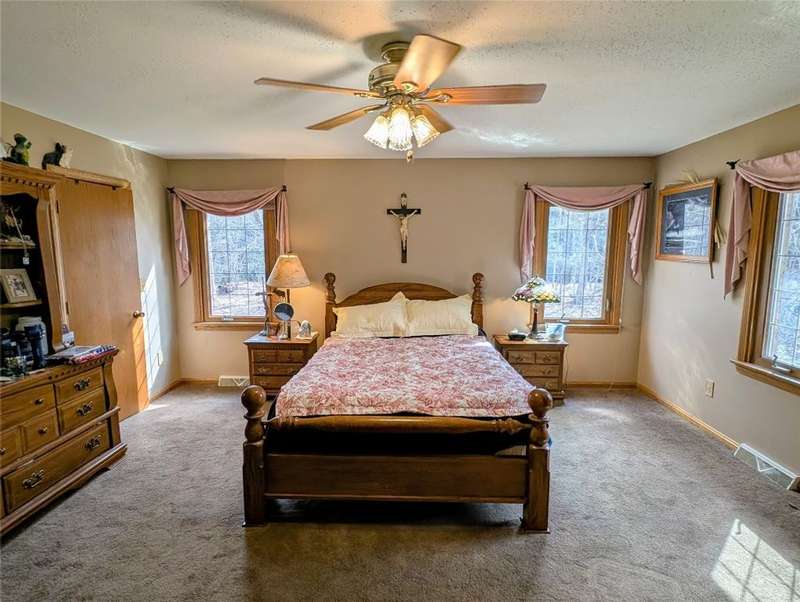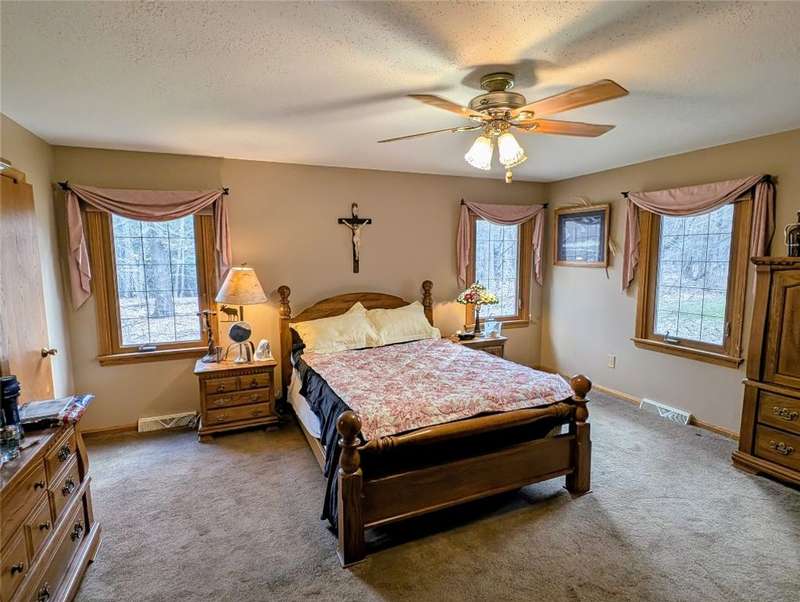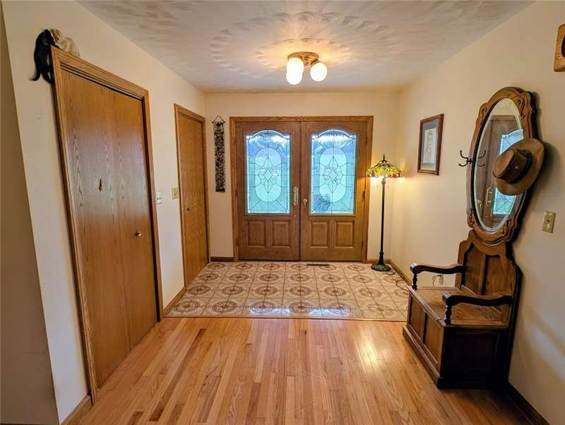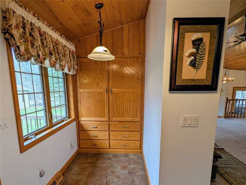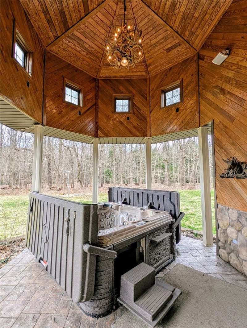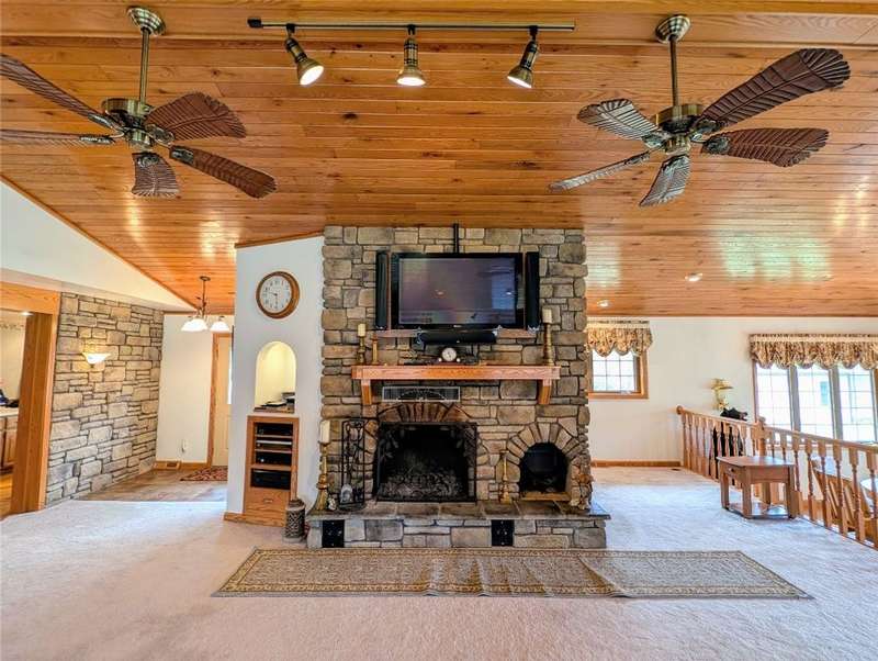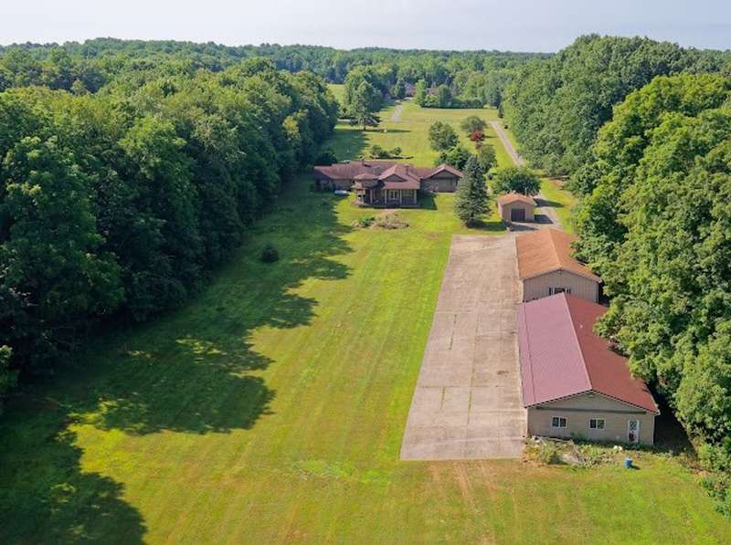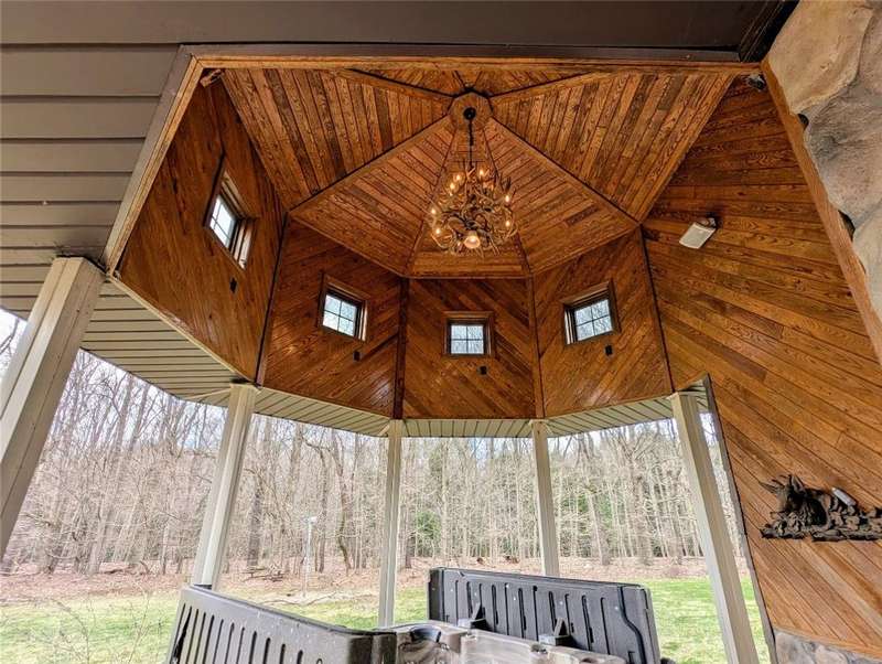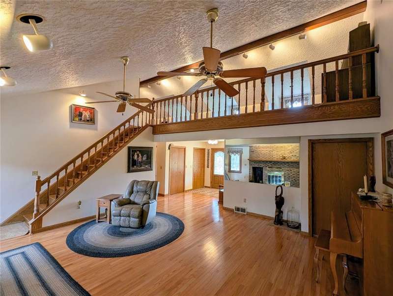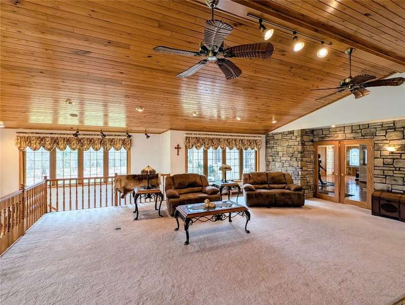 Country estate on 10.64 wooded acres along Elk Creek. This sprawling home has stunning architectural details, hardwood floors, and wood and stone accents. The inviting great room has vaulted ceilings, a soaring stone fireplace and walls of windows with views of wildlife. The attached gazebo is a private retreat for relaxing, with an ornate ceiling and a spa tub. A large loft area serves as a home office. The den has a wet bar and enough room for a gaming or pool table. The first floor laundry room could be converted into a bedroom. A finished lower level with kitchen and living area is perfect for an in-law suite. Attached 2 car garage. The outbuildings with heated work spaces and large overhead doors, add tons of storage and a party barn with a covered picnic pavilion. A wood boiler to the home is an additional heating source! Whether enjoying the peaceful surroundings, hosting gatherings, or simply unwinding in nature, here is a rare opportunity to own a true country sanctuary!
