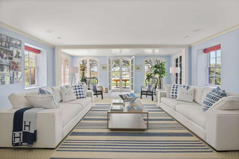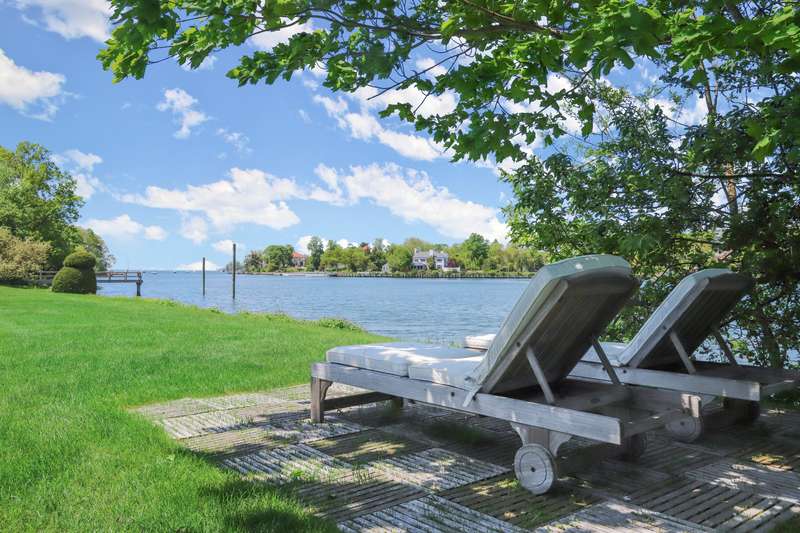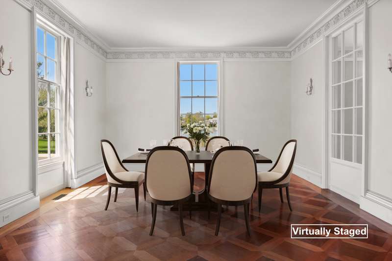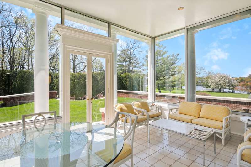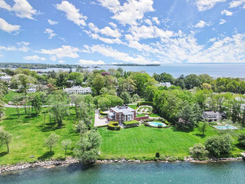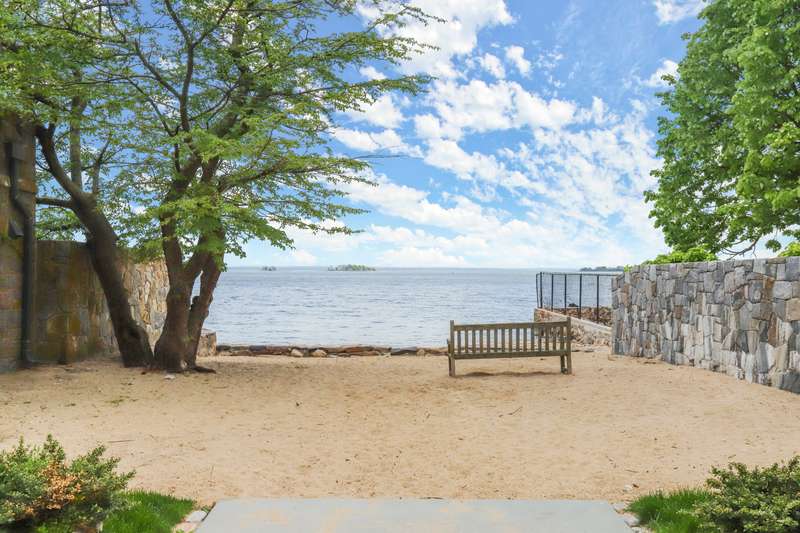 Waterfront estate in coveted Mead Point, one of a few gated communities in Greenwich, ready for the next chapter. Prominently sited on 2 glorious acres with 225' of shorefront, luxurious pool and expansive open lawns. Amazing privacy with the Windrose Association 5-acre park next door, which has dock with electricity & water. Seven ensuite bedrooms; main floor primary suite. Grand reception hall with rotunda introduces elegant formal spaces. One year's worth of work put into site elevation study, plans for renovation and plans for newly built 10,000+sf home. Options galore to create your own waterfront homestead in a neighborhood with great upside potential.