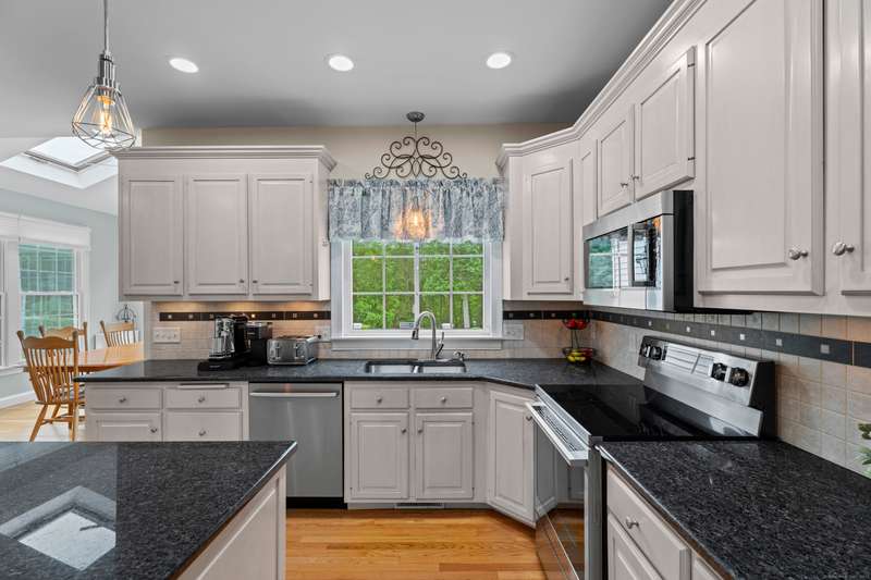 Welcome home to this spectacular colonial located on a quiet cul-de-sac. Stunning, spacious, and immaculate are only a few words to describe this house. Beautifully maintained inside and out! This Smart home offers you everything you could ask for. A freshly painted interior, gorgeous hardwood floors, granite countertops, new hunter douglas custom blinds, newly remodeled baths, and an abundance of finished storage areas are a few of the upgrades you will find in this home. With an open floor plan and 9 foot ceilings, the main level boasts of a large custom kitchen that opens to a large cozy family room, bright sunroom, formal dining room, formal living room, and half bath. Upstairs you will find a remodeled main bath, 3 spacious bedrooms, and large primary suite with huge walk in closet and a gorgeous, newly remodeled bath. Heading to the fully finished lower level, you will find a large living/recreation area with in-floor radiant heat, full bath, custom office, walk in pantries, and