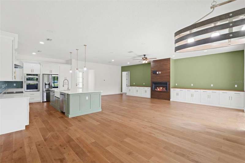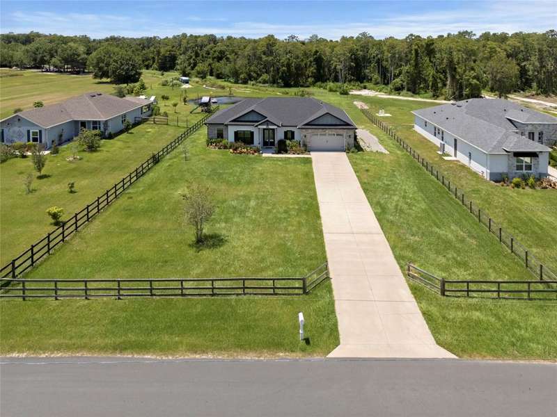 Looking for an almost brand new home on acreage with NO HOA? Look no further! This custom-built 4 bedroom, 2.5 bathroom home offers 2,582 sq. ft. of thoughtfully designed living space, perfect for a growing family.The gourmet kitchen is a showstopper, featuring a butler's pantry, quartz countertops, center island, farmhouse sink, pull-out garbage cabinet, designer backsplash, chimney-style range hood, built-in oven & microwave, and a breakfast bar.The spacious great room boasts built-in cabinets, custom counters, and an electric fireplace-perfect for cozy evenings. The luxurious master suite includes a tray ceiling, oversized walk-in closet, hardwood floors, a soaker tub, separate shower, dual vanities, and linen cabinets.Additional upgrades include: 5 1/4 baseboards & crown molding Ceiling fans throughout Double-pane insulated windows Rain gutters & 3-panel sliding glass pocket door Motion detectors, water softener, & soft-close cabinetry Bluetooth speakers in all bathrooms TV hookup on the back patioThis home is built with concrete block, gable board, and Hardie board siding for long-lasting durability. Hardwood floors flow throughout the home, with carpet in three bedrooms. Lot dimensions are approximately 110' x 593' x 110' x 597', offering plenty of space for outdoor enjoyment.