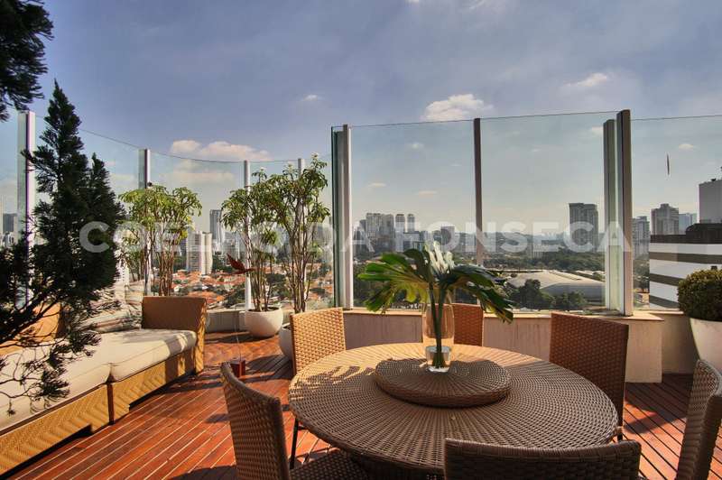 Cobertura no bairro Brooklin com 419m² área privativa/útil, 4 dormitório(s), 3 suíte(s), 6 vaga(s), 4 banheiro(s), churrasqueira, terraço, duplex, ar condicionado, dep. de empregados, reformado (a), varanda gourmet.