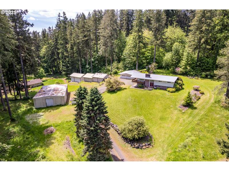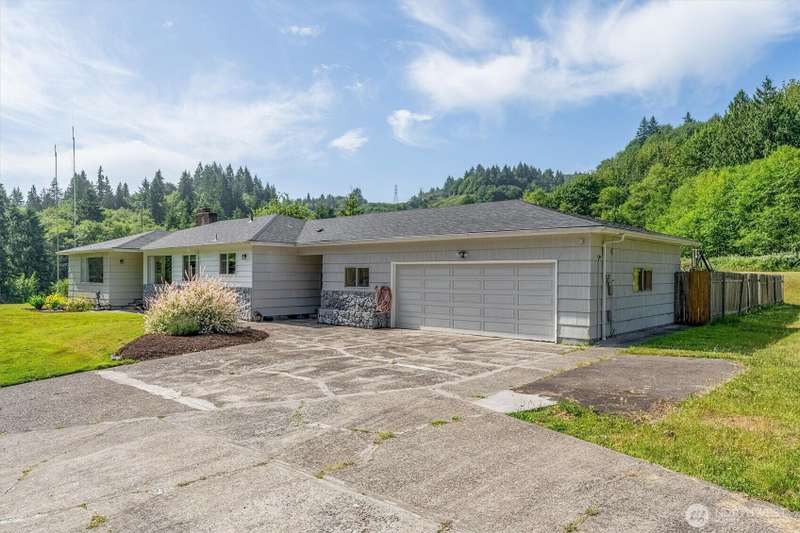 4 Bedroom, 2 bath home on 3.72 acres. Brand new septic tank. Living room w/wood burning fireplace, Hardwood flooring and upper deck overlooking Silverlake. 3 Beds upstairs, 1 bed lower level plus bonus room. Heat pump is 8 years old. Roof was replaced in September 2024. Spacious kitchen with access to back deck for entertaining. Adjacent to formal dining room with built in buffet drawers. Downstairs family room w/a second wood burning fireplace, Rec room and wet bar. 3 car garage, Large shop/barn with stalls and RV parking with septic behind shop. 2nd driveway leads to older manufactured home used for storage. Large kennel, Tool sheds, fenced garden and walking trails behind the house. Property backs up to Seaquest State Park.