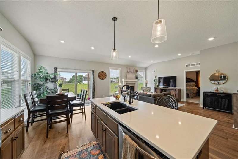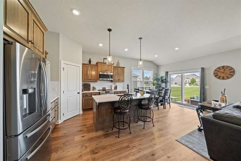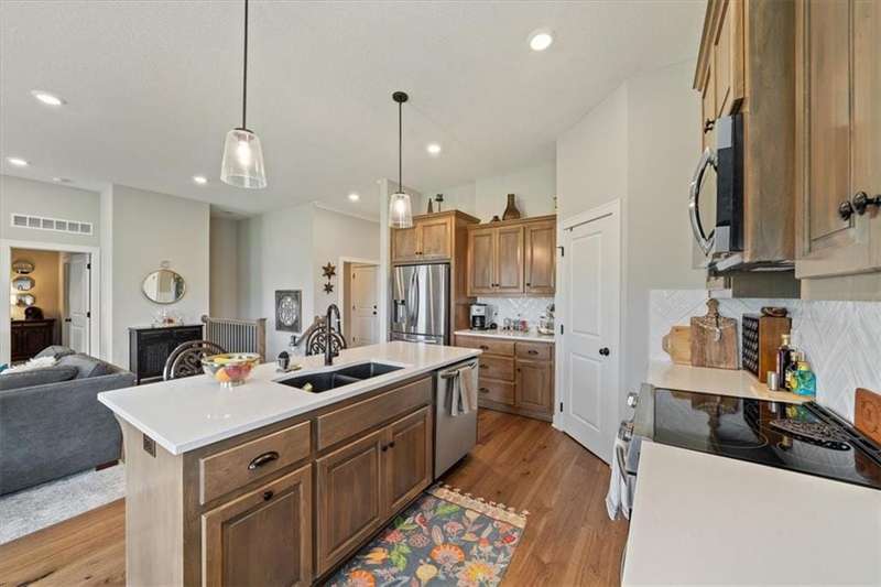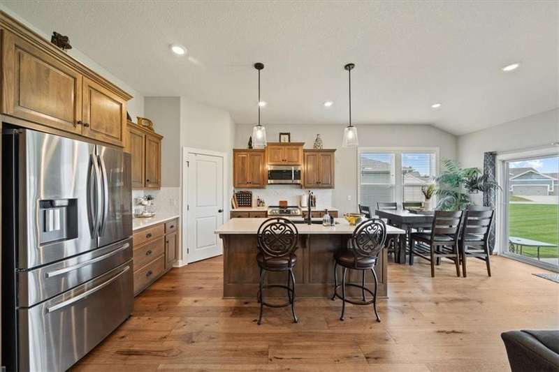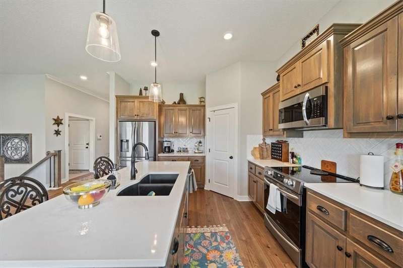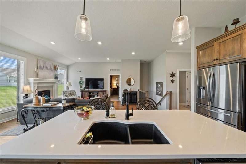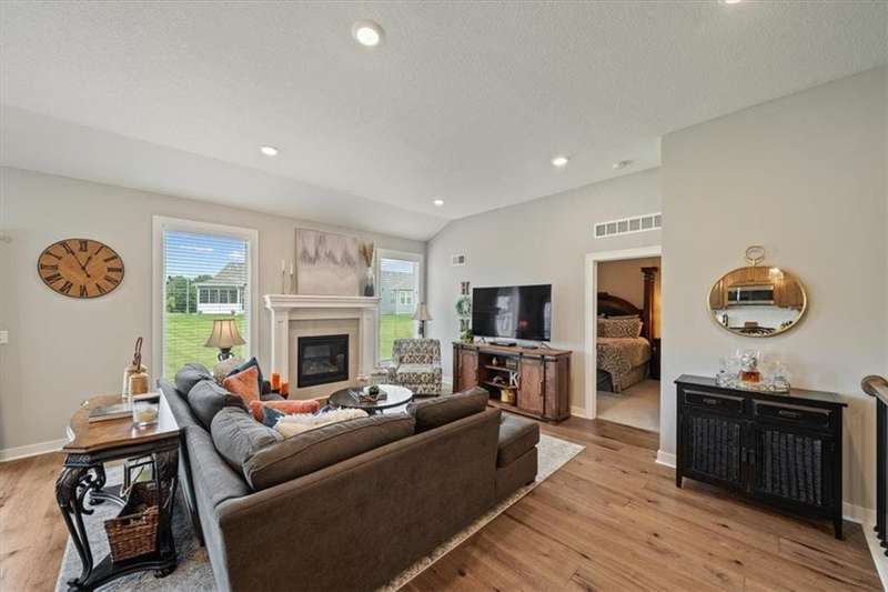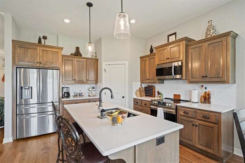 Impeccably Designed Modern Ranch Better Than New! Step into this beautifully crafted 3-year-old ranch that offers effortless main-level living with a sleek, modern aesthetic. From the gleaming wood floors to the elevated finishes throughout, every detail showcases pride of ownership. The chef-inspired kitchen shines with Carrara Marmi quartz countertops, a striking herringbone tile backsplash, an electric range with built-in air fry feature, and upgraded lighting that adds a designer touch. High-traffic areas are thoughtfully finished with durable, stylish carpet on the stairs. This is not just a home its a polished retreat designed for comfort, function, and style.