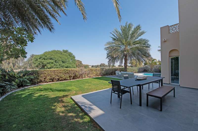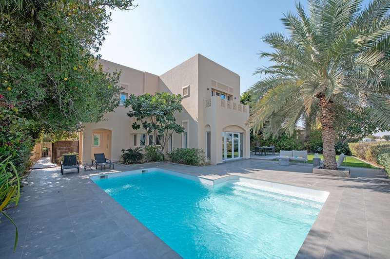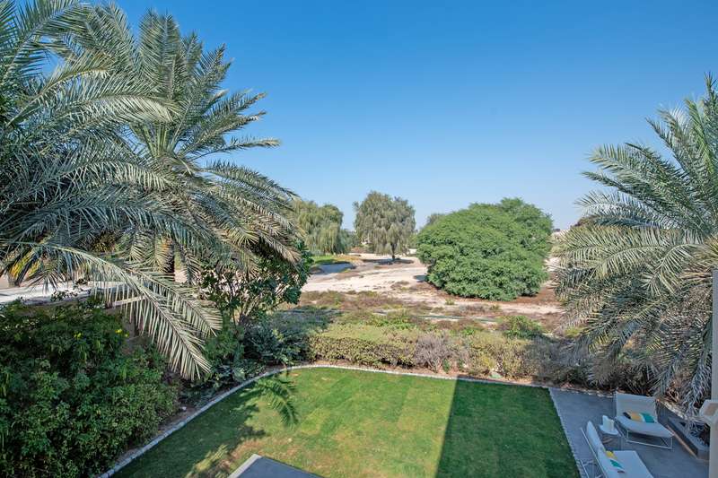Betterhomes is pleased to bring to the market this immaculate Type 17 Villa on the Golf Course in Al Mahra. * Fully Upgraded Al Mahra is another gated sub-community of Arabian Ranches, offering from 4, 5, 6 and 7 bedroom villas with a total of ten layouts. It is primarily located between Terra Nova and the Desert Golf-course. In terms of community design, it is similar to other Ranches communities with no particular differentiating factor beyond its traditional Arabic architectural design. The kind of finishing one would find on the villas are described by the Developer as ‘neutral whites, placid creams, light tan and sand colors; as well as Gypsum decorations, arches, recesses, well-designed domes and bright open space that complete the Arabesque design. The front-yard of each villa is covered with a car parking for two vehicles. Then there are also large balconies and terraces that will make feel comfortable while overlooking the views.