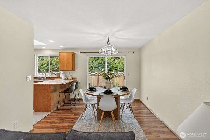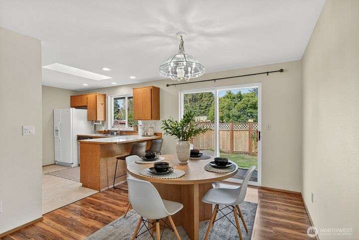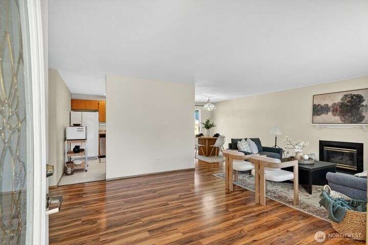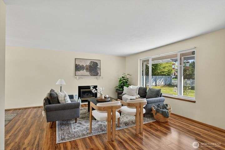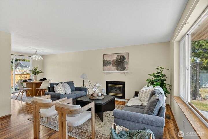 Nestled in a desirable west side neighborhood, this darling one-level rambler offers comfort and ease of living. The spacious living room is filled with natural light and a cozy fireplace, flowing seamlessly into the dining area and generously sized kitchen with abundant storage, ample work space, and an eat-at peninsula. The primary bedroom features a walk-in closet and own ¾ bath, with two additional bedrooms and a full bath completing the layout. A convenient laundry/mudroom connects the home to the two-car garage. Outside, a backyard patio, covered front porch and a sunny private yard that wraps around the home—perfect for gardening, entertaining, or simply enjoying peaceful surroundings. A wonderful home ready for new memories!