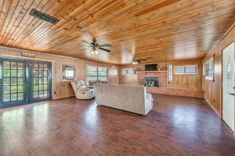 Step into timeless charm with this spacious 1930s Colonial-style home, offering 5 bedrooms, 3 full bathrooms, and over half an acre of outdoor space! This beautiful home blends historic character with modern comfort. The inviting main living area features warm wood accents and a cozy wood-burning fireplace, perfect for gathering with family and friends. The large, open-concept kitchen with a large island, abundant cabinetry, and a second living space with built in bar area ideal for everyday living or entertaining.The master suite is conveniently located on the main floor, while four additional bedrooms and a charming second-story balcony await upstairs. Outside, enjoy the expansive yard, complete with a fire pit and plenty of room to roam or relax. Outside well for watering your yard. This one-of-a-kind home offers comfort, character, and spaceall within a stunning Colonial frame with opportunity to still make it yours.