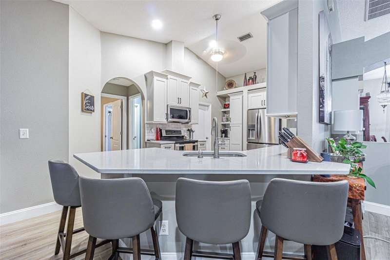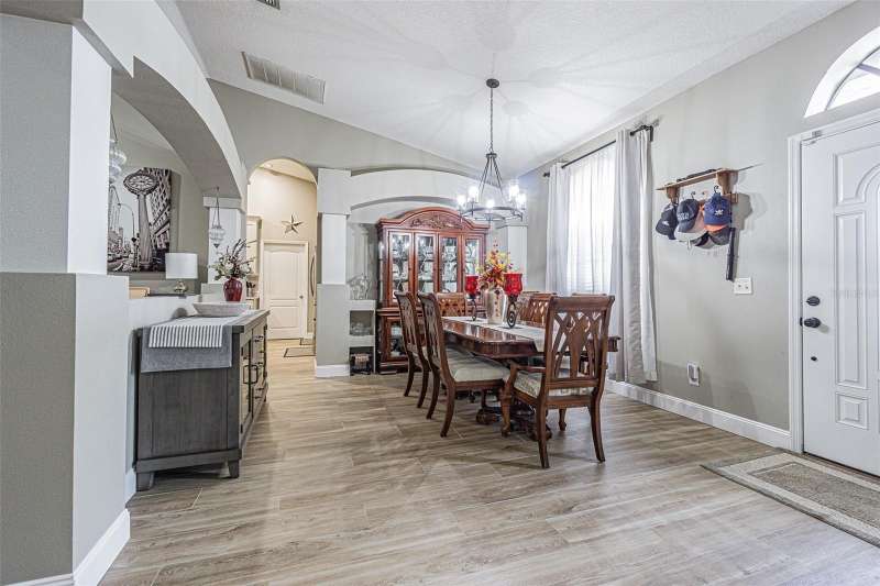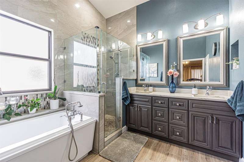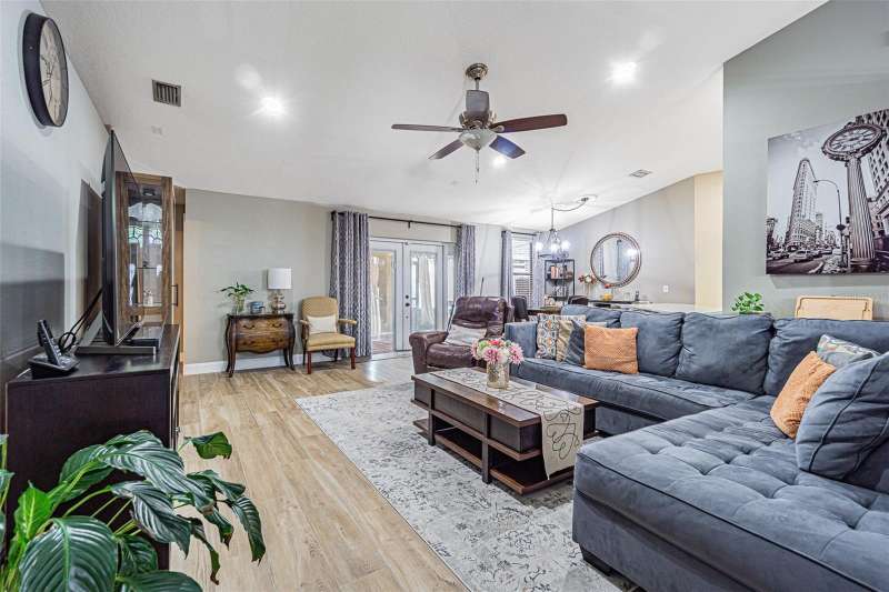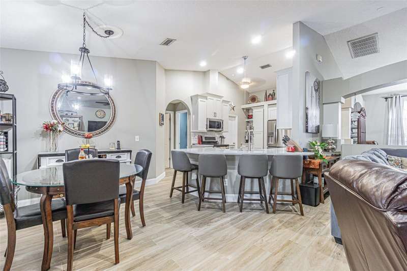 Welcome to this inviting and thoughtfully designed Florida home, where spaciousness meets comfort and versatility. From the moment you arrive, you’ll appreciate the home’s curb appeal, enhanced by a side three-car garage and charming covered front porch—perfect for relaxing with your morning coffee. This home has been renovated and freshly painted inside and out!! Features 5 bedrooms, 3 full baths, den/office, formal dining room, large family room, and a inside laundry room. The 5th/bonus room offers a FULL bath and a walk-in closet. All bedrooms including the kitchen offers ceiling fans with decorative lighting. The oversized master bedroom features large slider doors that lead out to the patio area, a beautiful master bathroom with a pocket door, ceiling fan with decorative lighting, beautiful wood plank tile flooring, walk-in closet with extended hanging rods and shelves for increased storage and organization. The master bathroom offers wood plank tile flooring, stand-alone deep tub with 3-handle deck mount clawfoot tub faucet, frameless glass shower with half-wall to separate tub, double swing shower door, river rock shower basin, rain head and standard shower head, floor-to-ceiling large format porcelain tile, niches and corner seat, QUARTZITE countertops with backsplash, double vanities with doors and drawers, rectangular sinks and Delta faucets, new vanity lights and dual mirrors, linen cabinet with partial glass doors. separate water closet with sink, QUARTZITE countertop with backsplash, vanity with doors and drawers, new lights, mirror and secondary door for hall access, if needed. The bathroom 2 offers tiled floor, 12”x 24” porcelain, new mirror and vanity lights, double vanity with faucets, rectangular sinks, backsplash, GRANITE countertop and backsplash. The Tub/shower feature tiled to the ceiling with a niche, delta shower head and recessed lights. The bathroom 3 was renovated in 2024 features converted from tub/shower to large walk-in glass shower with sliding door, porcelain tiled floor, hexagon, delta faucets, 48-inch vanity with doors and easy drawers, DOLOMITE countertop with backsplash, new mirror, vanity and ceiling lights. The exterior offers a beautiful front elevation that features a natural stone accent and front columns, an extended 14x37 patio, large fenced backyard with two gates, upgraded landscaping throughout, solar landscape lighting, cameras and security system irrigation system with five (5) zones, a paved walkway that leads from the patio to the large covered Gazebo/Grilling area. The large patio features a 220v outlet to accommodate Hot Tub on Patio, custom curtains all around to maintain privacy and temperature control. Located in a prime Riverview location, this home is just across from Riverview High School, minutes from US-301 and I-75, offering easy access to Tampa and Orlando. NO CDD and LOW HOA. Don’t miss your chance to own this move-in-ready home in one of Riverview’s most desirable neighborhoods. Schedule your private showing today!
